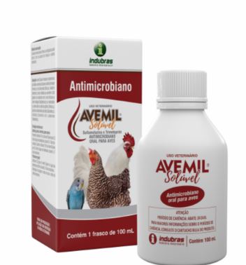 Avemil Solúvel é indicado no tratamento da coccidiose ou eimeriose das aves ou diarreia de sangue (Eimeria sp.) e da cólera aviária (Vibrio sp.).