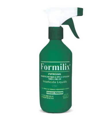 FORMILIX é um produto pronto uso, elaborado com FIPRONIL, eficaz no controle de formigas,cupins,pulgas,carrapatos, baratas (Periplaneta americana e Blatella germanica), moscas (Musca