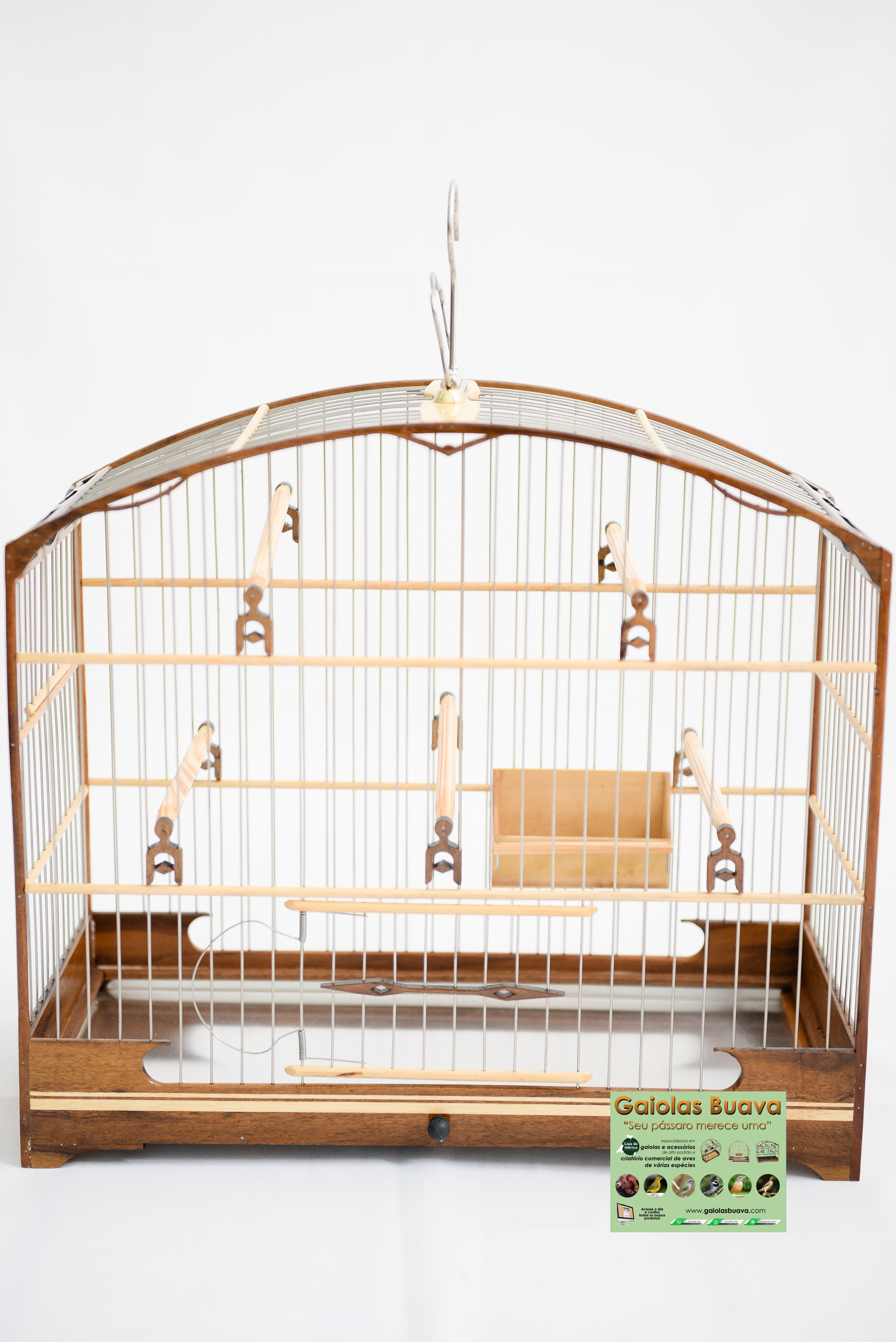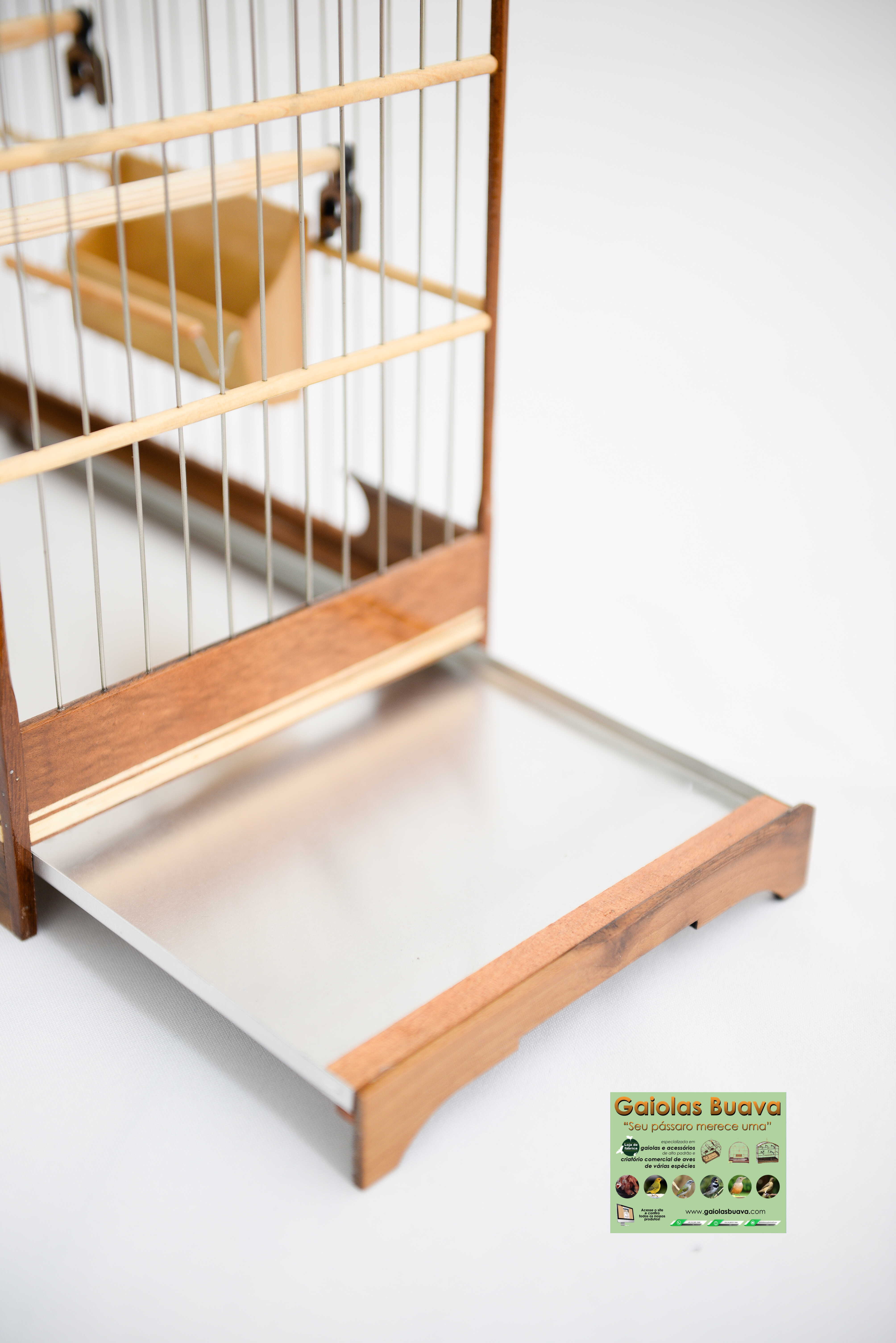 GAIOLA MIXTA DE COLEIRO EM INOX, COM COCHO ALTO, MALHA FINA, ACABAMENTO EM FILETE, FUNDO COM SAÍDA LATERAL, UM PASSADOR, PORTA EM MOLA E DETALHES BEM TRABALHADOS NO ACABAMENTO.