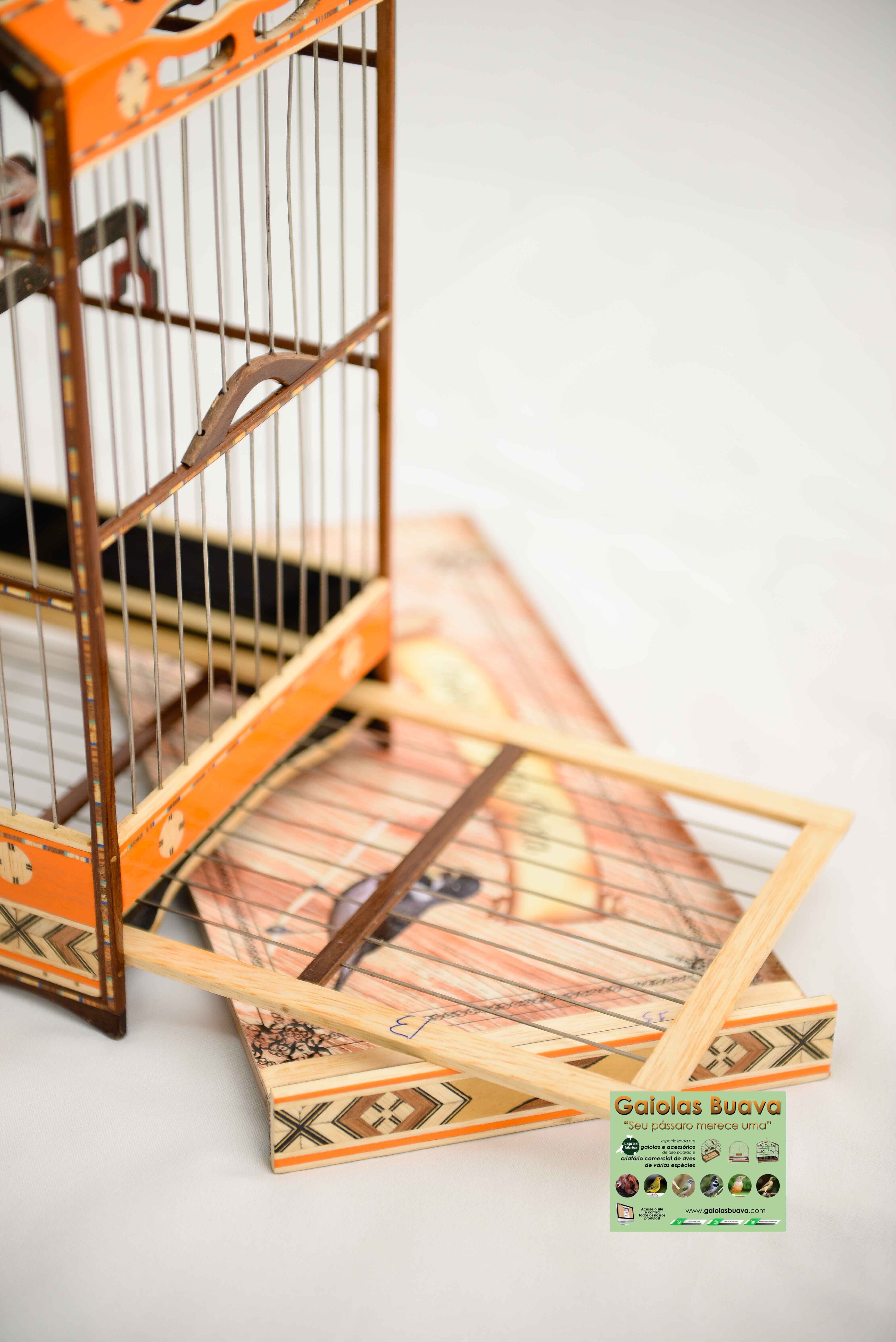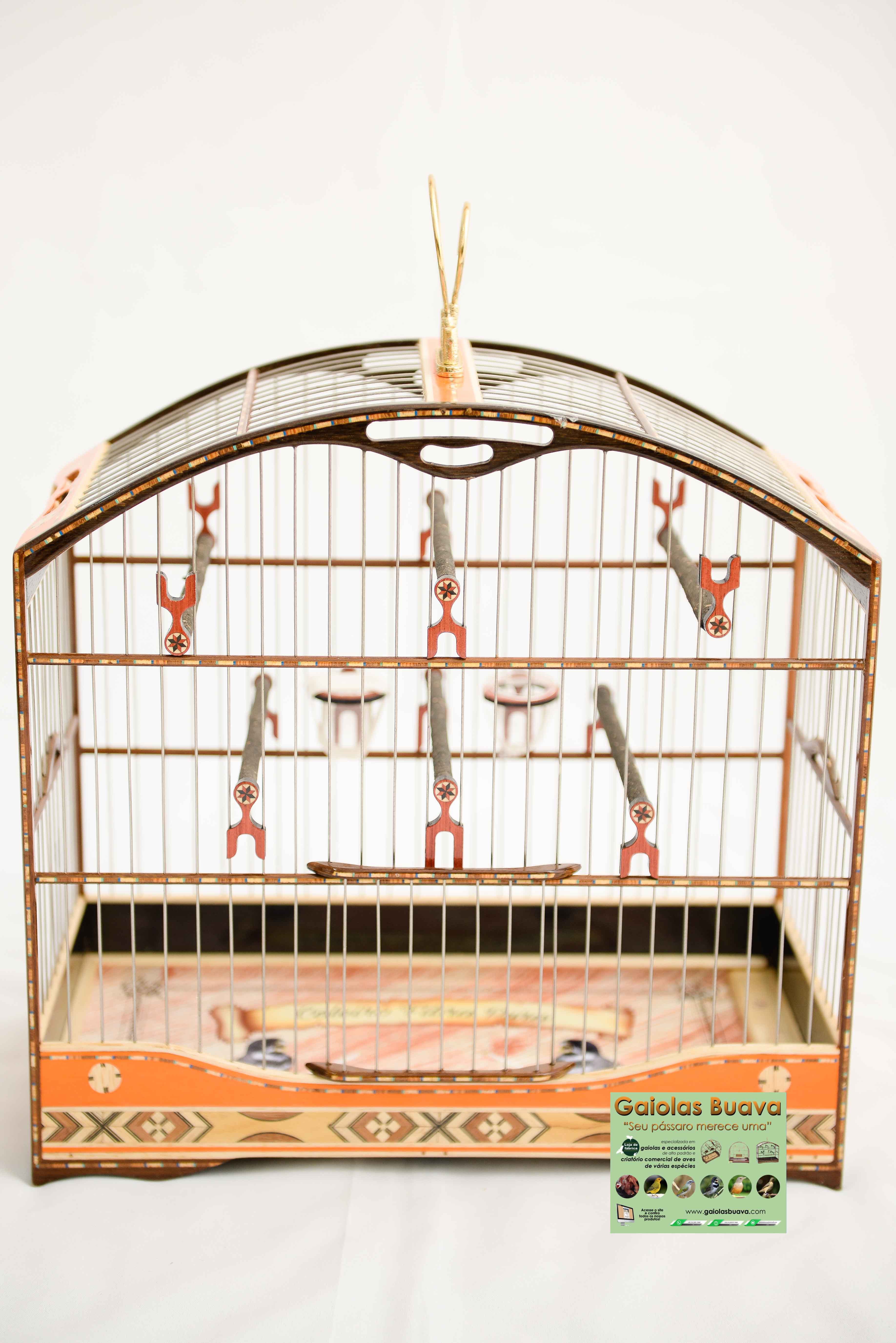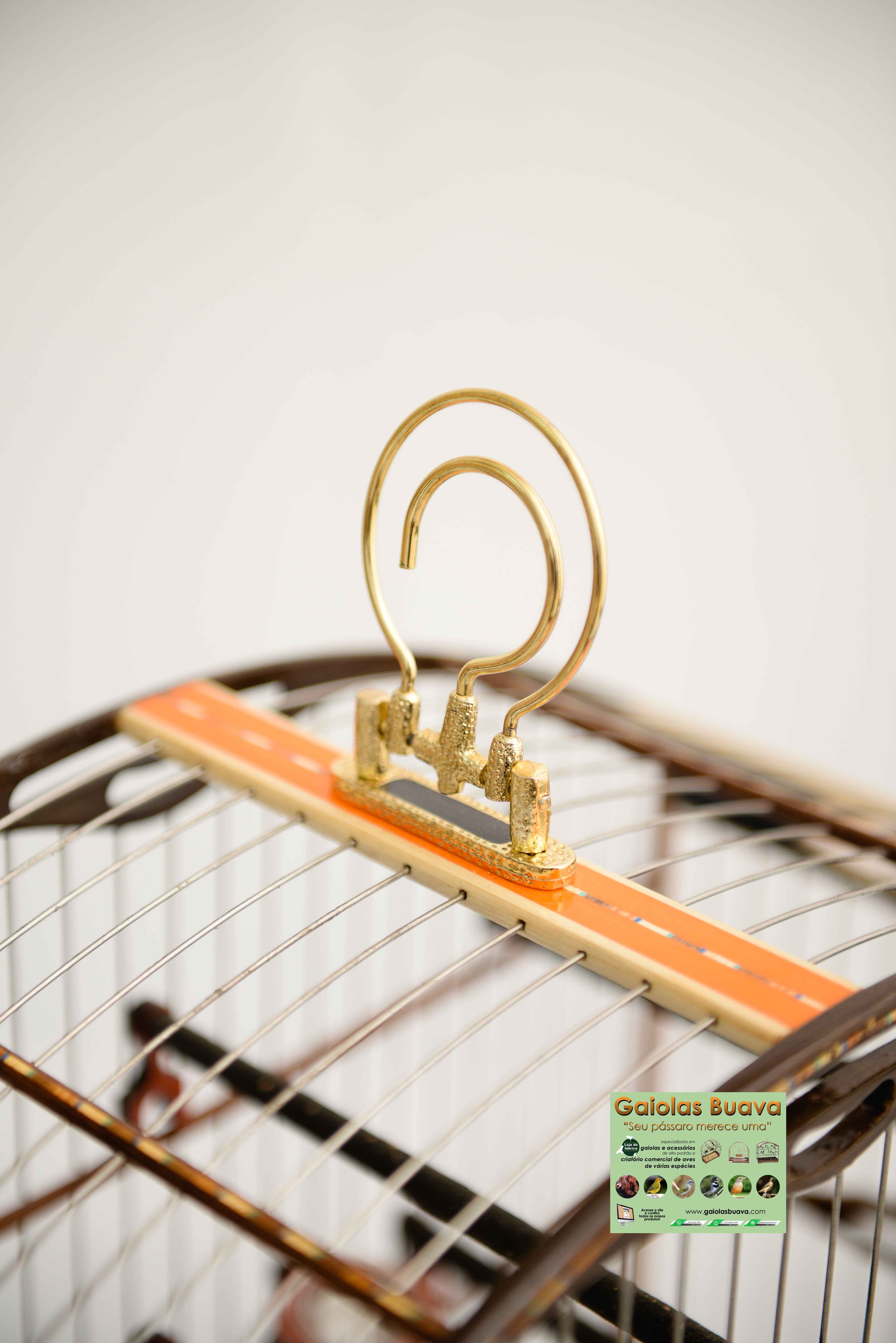 GAIOLA COLEIRO ARAME INOX DE LUXO ALARANJADA COM DETALHES EM MARCHETARIATODA TRABALHADA E COM ÓTIMO ACABAMENTO