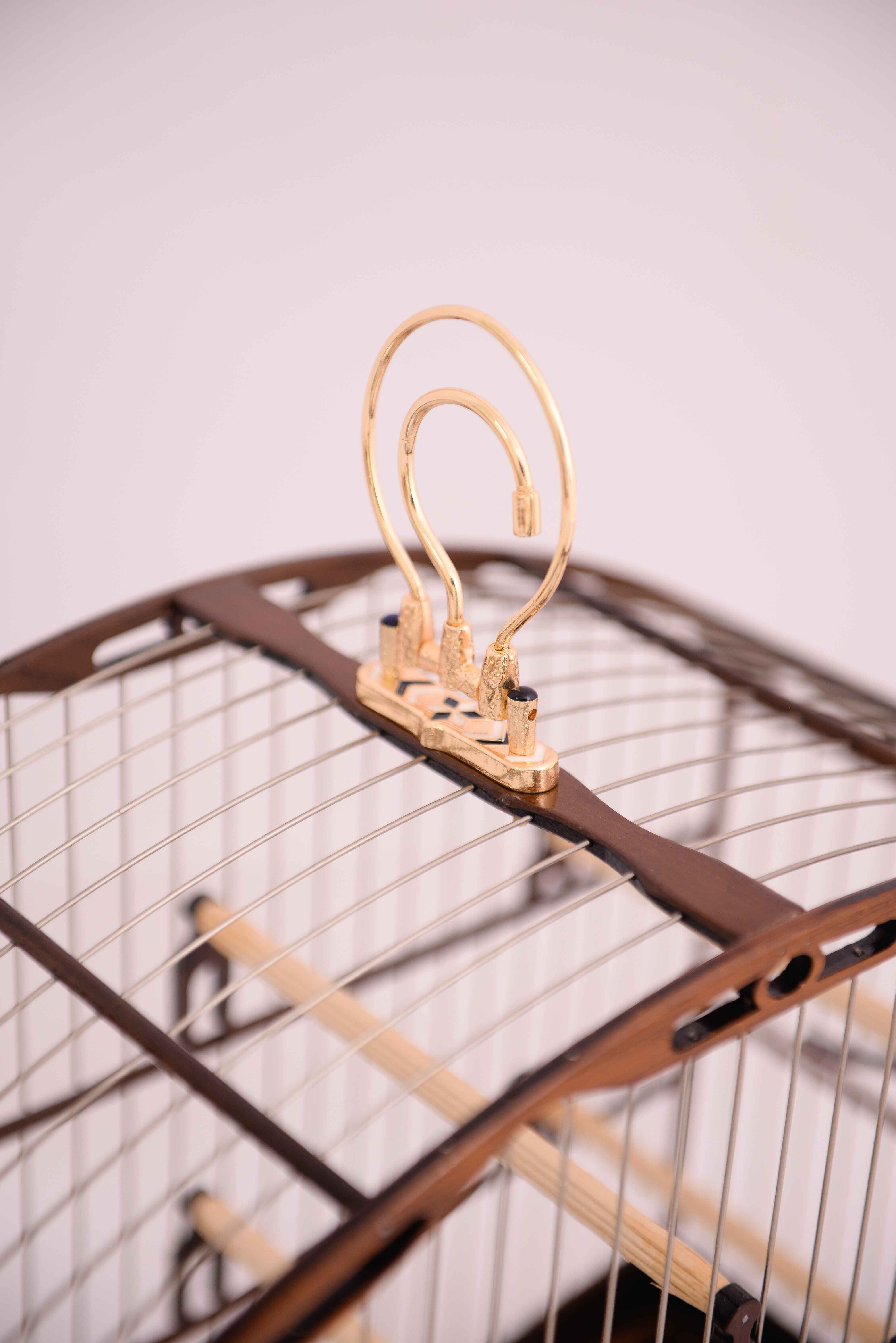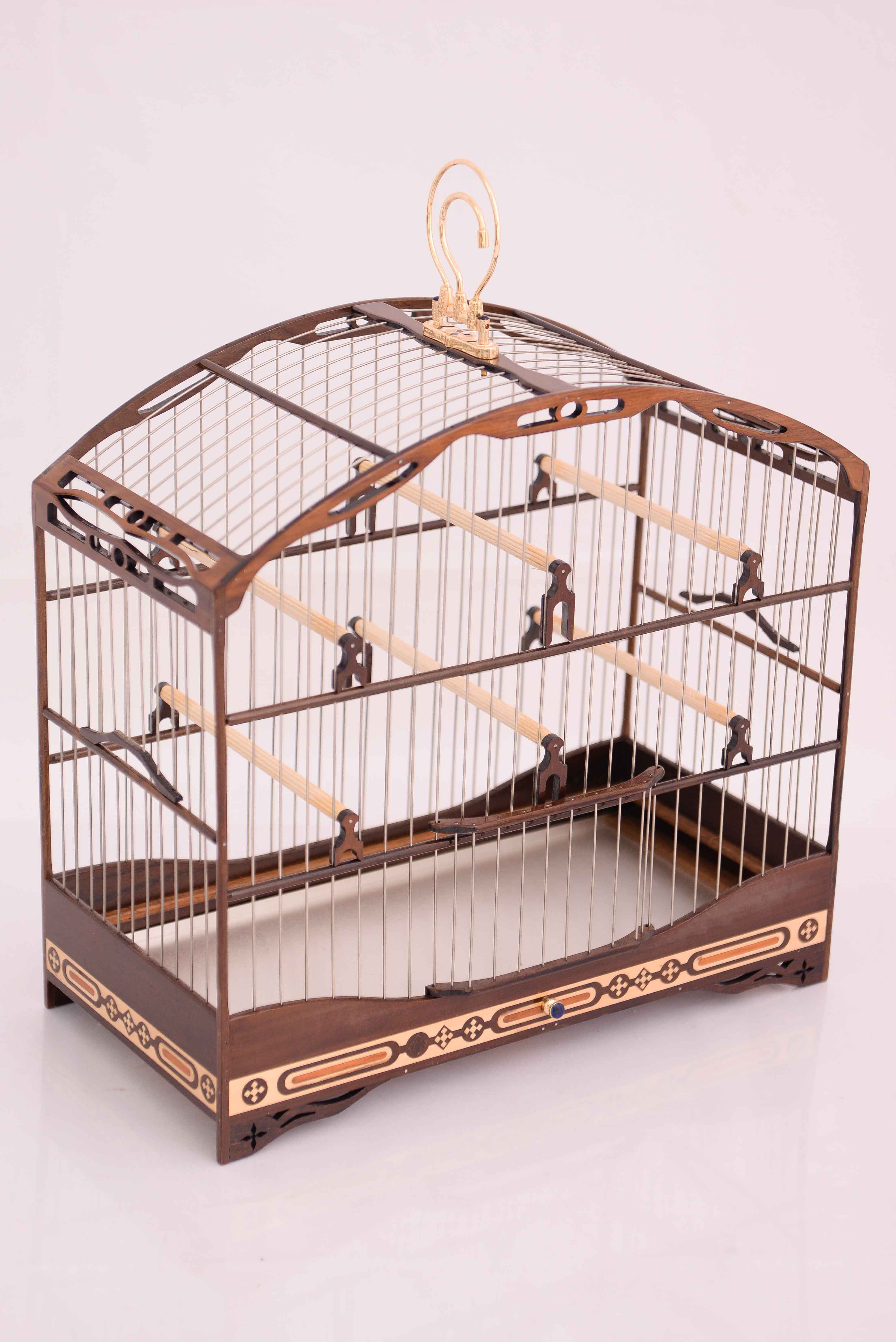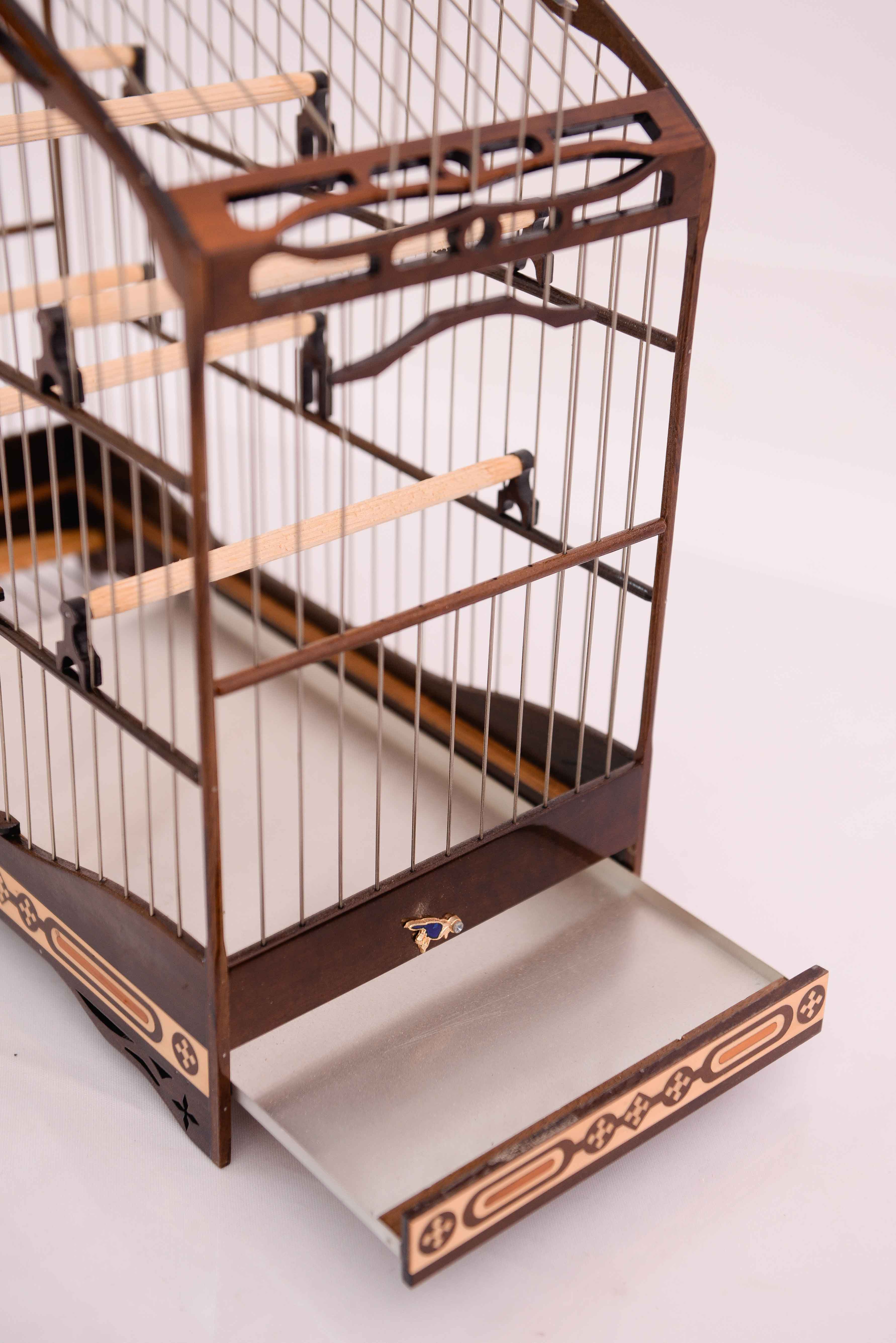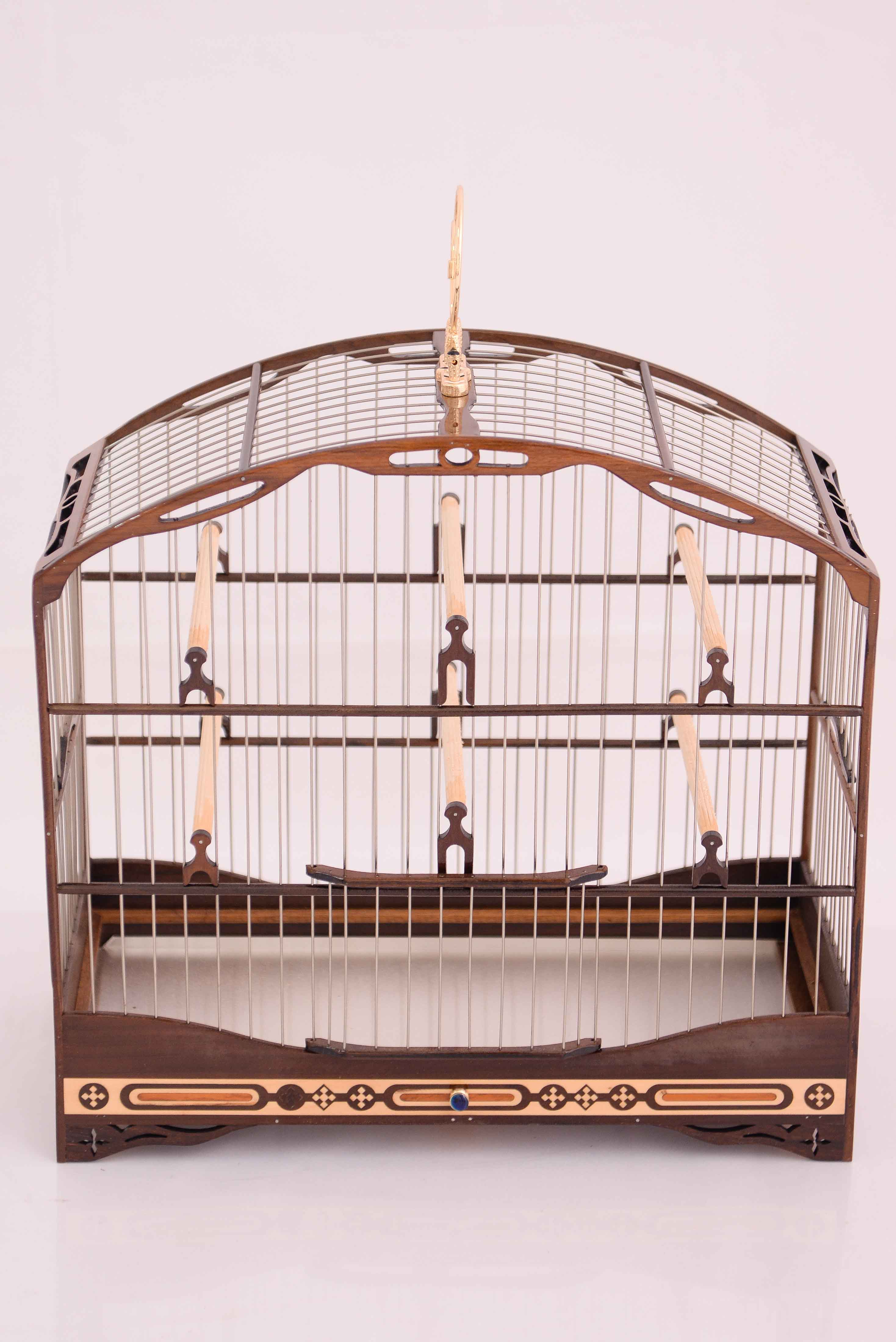 GAIOLA DE IMBUIA MARCHETADA PARA COLEIRO - MALHA FINA TECIDA EM INOX