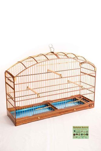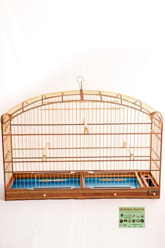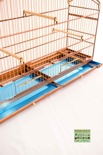 GAIOLÃO ABAULADO DE FIBRAMALHA LARGAFUNDO REMOVÍVEL PELA FRONTAL DIVIDIDO EM DUAS PARTES 1 PASSADOR LATERAL 1 COCHO BAIXO COM POLEIRO 3 POLEIROS COM PRESILHAS 1 ALÇA CARA DE GATO + 1 GANCHO 2 PORTAS DE MOLA