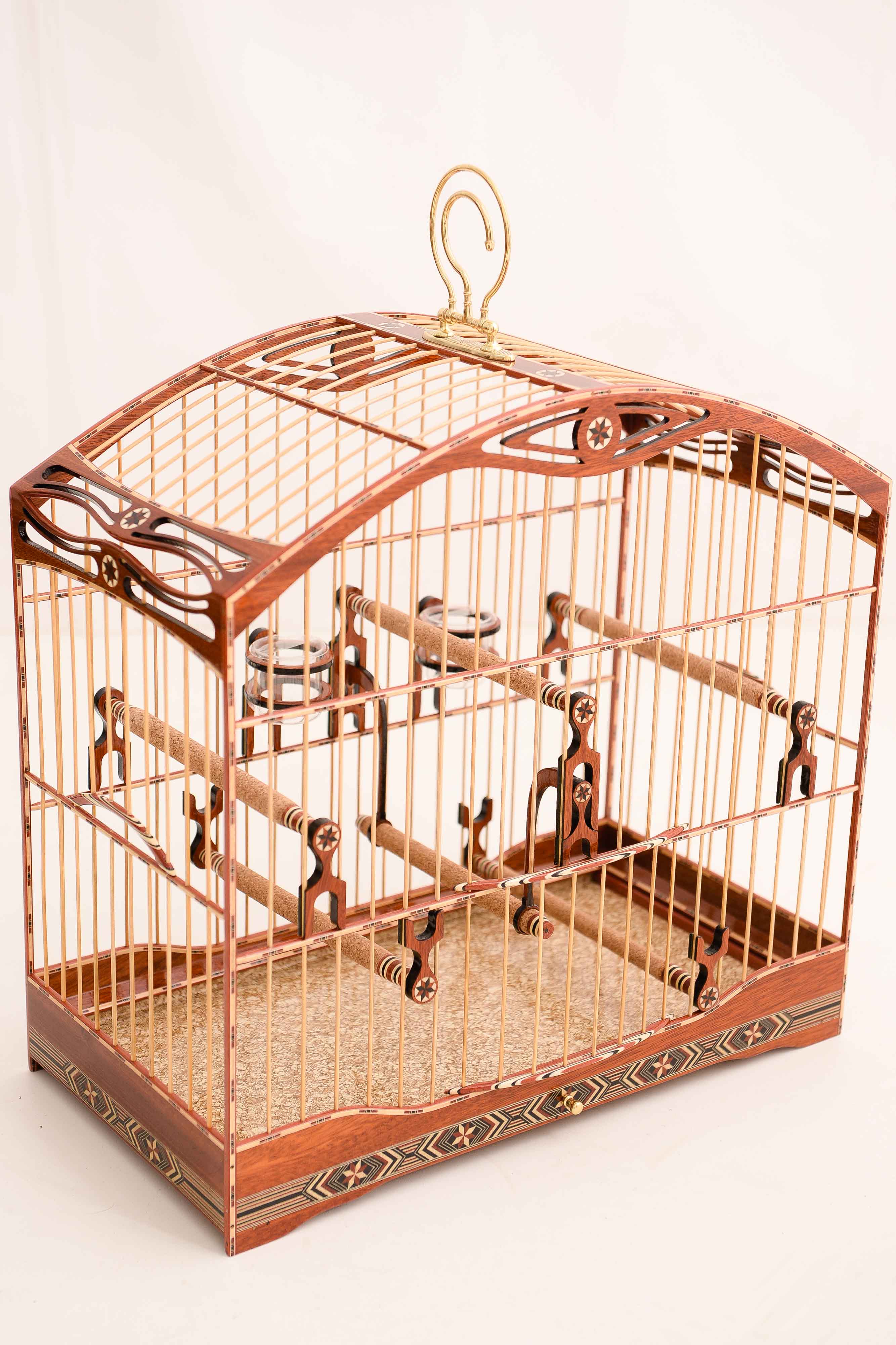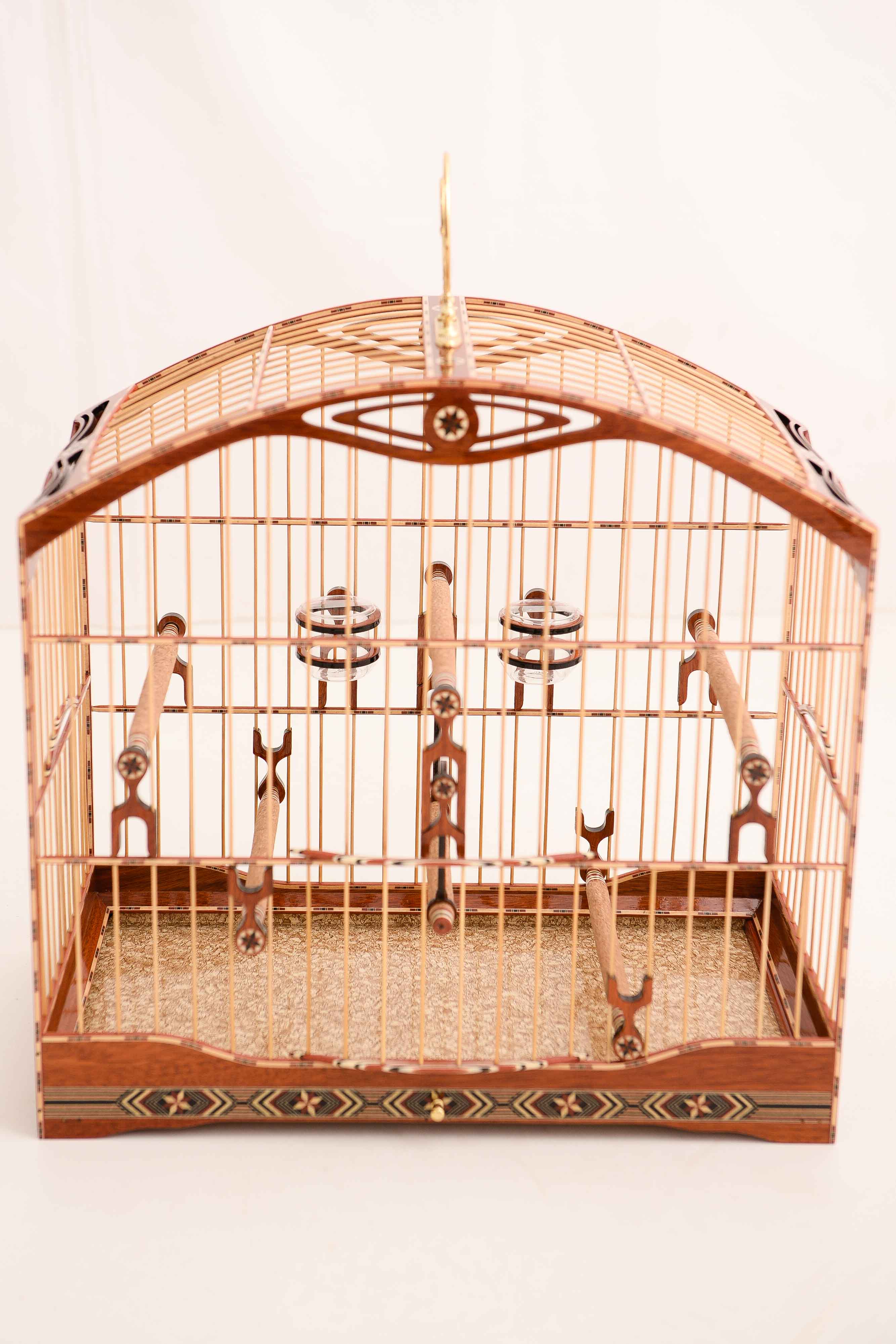 GAIOLA PARA TRINCA FERRO DE LUXO - DE FIBRA EM MALHA LARGA COM DETALHES MARCHETADOS