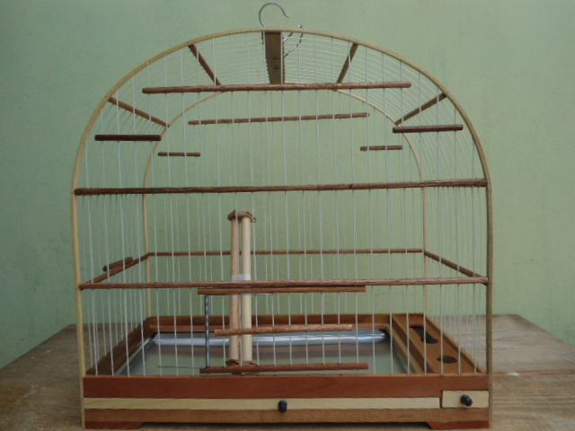 GAIOLA FEITA EM MADEIRAS NOBRES E TECIDA EM FIBRA,  FUNDO RETIRADA FRONTAL, COM BOM ACABAMENTO.