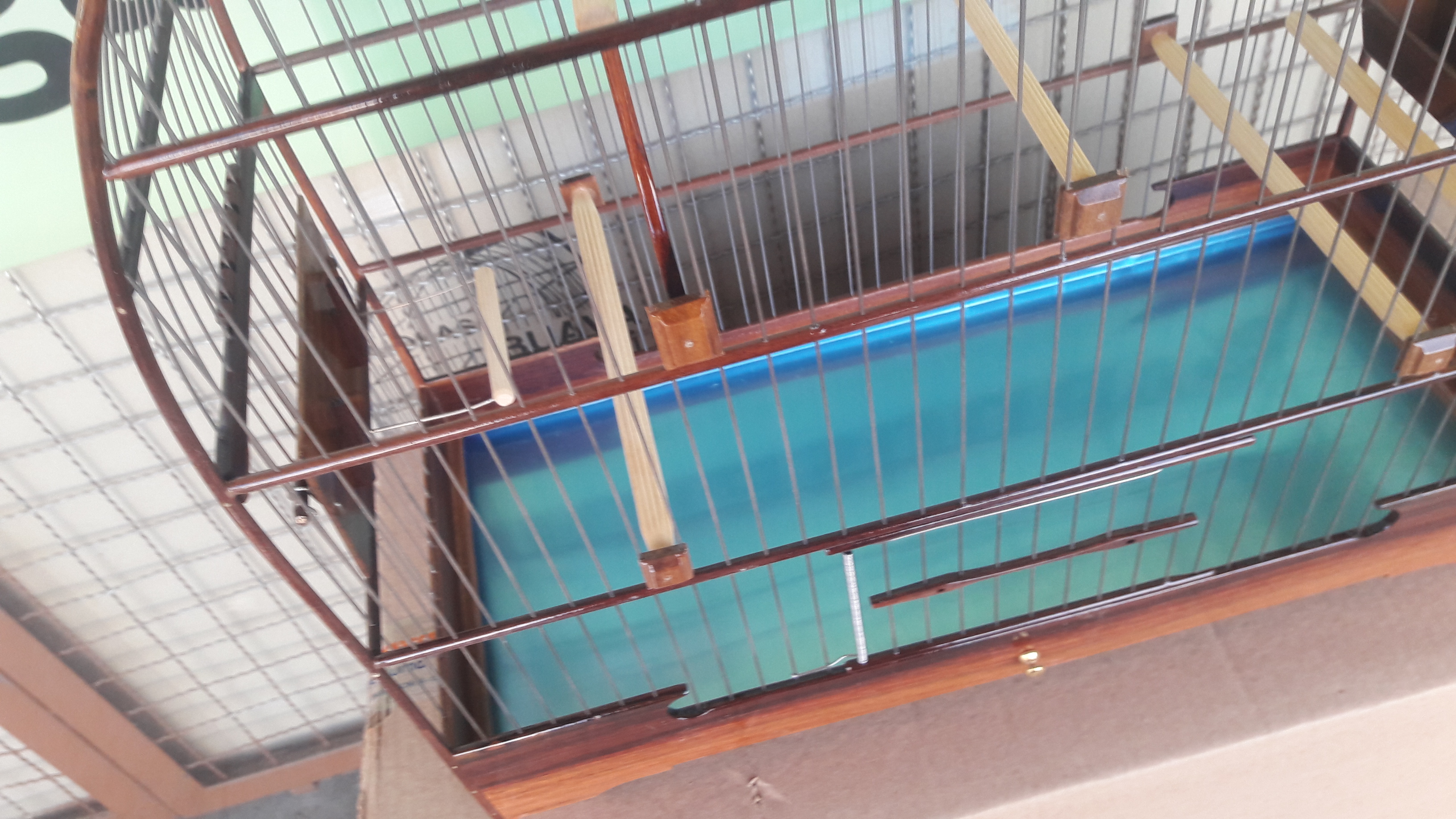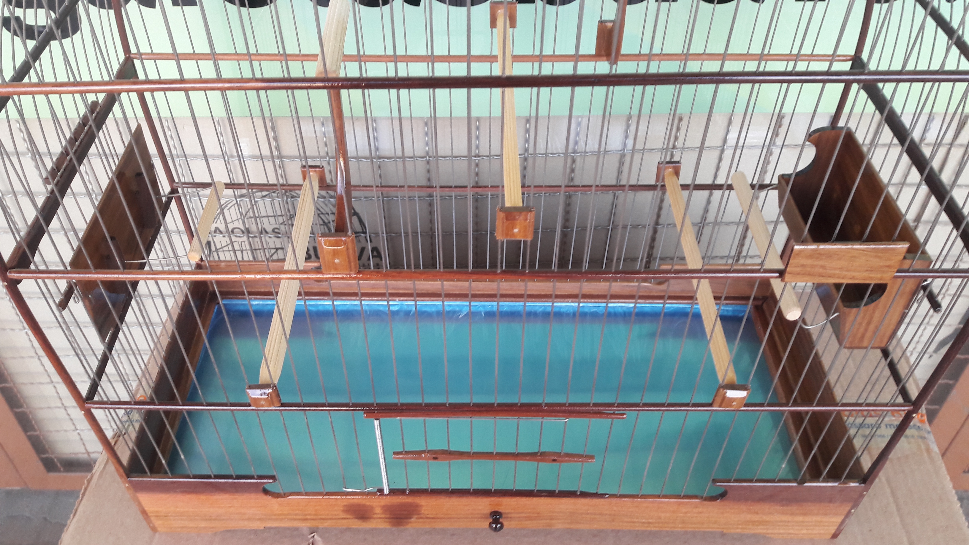 GAIOLA TODA PRODUZIDA EM JACARANDA , ARAME inox , VERNIZ PU , PREGOS DOURADOS., GRADE REMOVIVEL DETALHES GANCHO DOURADO LUXO