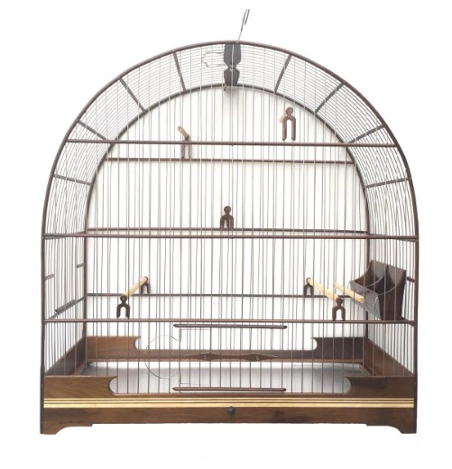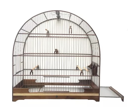GAIOLA FEITA TODA DE IMBUIA PRETA , ARAME DE AÇO INOX E GRADE REMOVIVEL, VERNIZ PU, PREGOS DOURADOS, GANCHO DE LATÃO ESPECIAL , FILETADA NA BASE, EXCELENTE ACABAMENTO. MEDIDAS: ALTURA: 51 COMPRIMENTO: 49 LARGURA: 20.5 ACOMPANHA: 3 PULEIROS 1 COCHO ALTO REMOVIVEL 2 DORMINHOCO 1 GANCHO ESPECIAL DE METAL ATENÇÃO : ESTA GAIOLA POSSUI UM ENCAIXE ESPECIAL ENTRE AS EXTREMIDADES DAS MADEIRAS DEIXANDO A GAIOLA MUITO MAIS RESISTENTE.