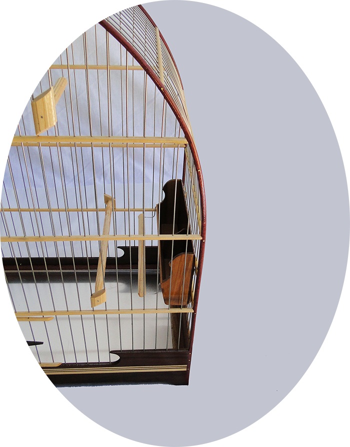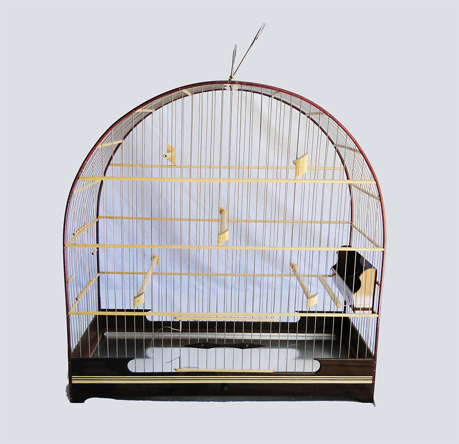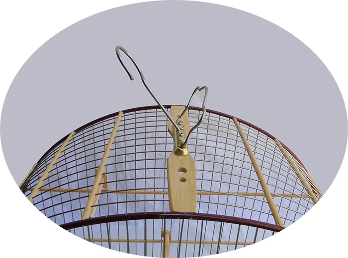 GAIOLA FEITA DE IMBUIA COM ARCO CARVALHO E DETALHES DE MARFIN, ARAME DE AÇO INOX E GRADE REMOVIVEL, GANCHO ESPECIAL DE METAL, VERNIZ PU, PREGOS DOURADOS, EXCELENTE ACABAMENTO.