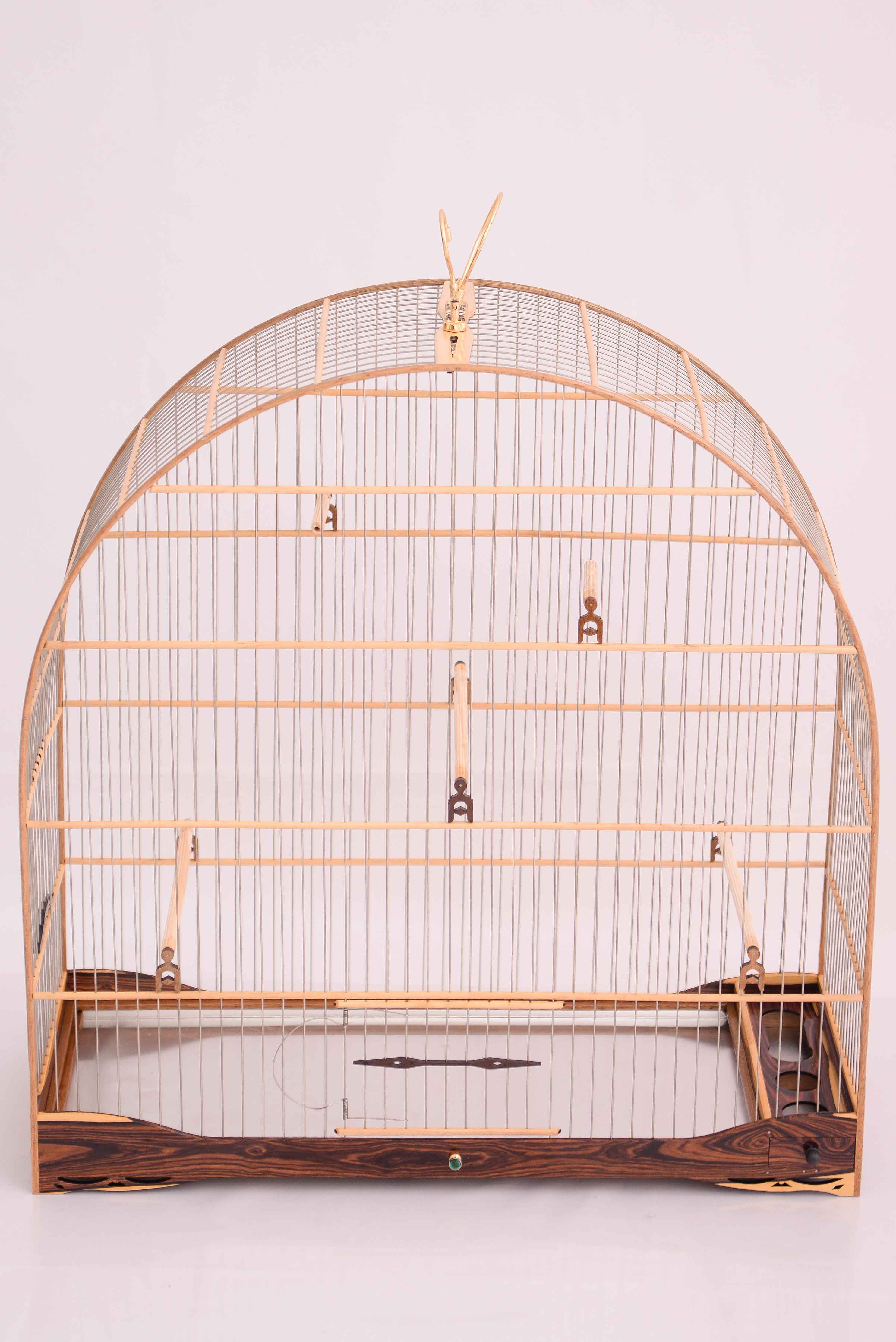 Gaiola número 6 de madeira jacarandá mista com marfim, de malha fina tecida de inox. Na gaiola acompanha 1(um) passador lateral com porta de guilhotina, de abertura vertical, 1(um) gancho de luxo de duas funções, 3(três) poleiros com presilha ferradura, 2(dois) dorminhocos com presilha ferradura, 1(uma) porta principal de mola, e 1(um) cocho baixo removível, tanto o cocho, quanto sua tampa podem ser removidos pela frente da gaiola.