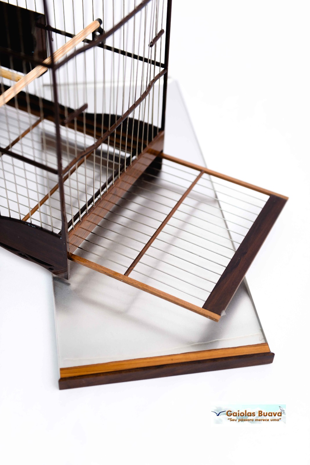 GAIOLA N6 IMBUIA PRETA COCHO ALTO INOX ABAULADA   BEBEDOURO AMBAR MALHA FINA - 110 ML