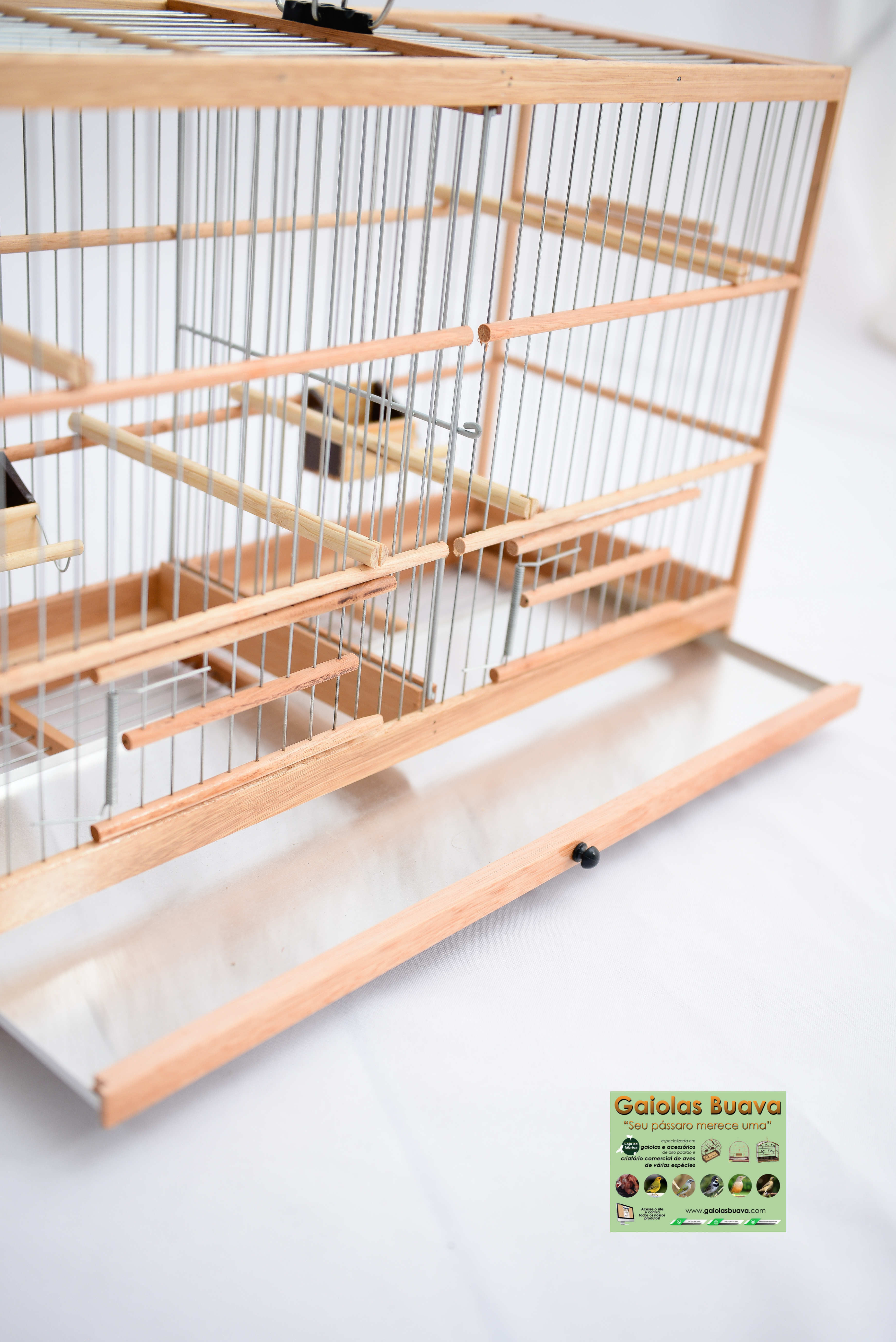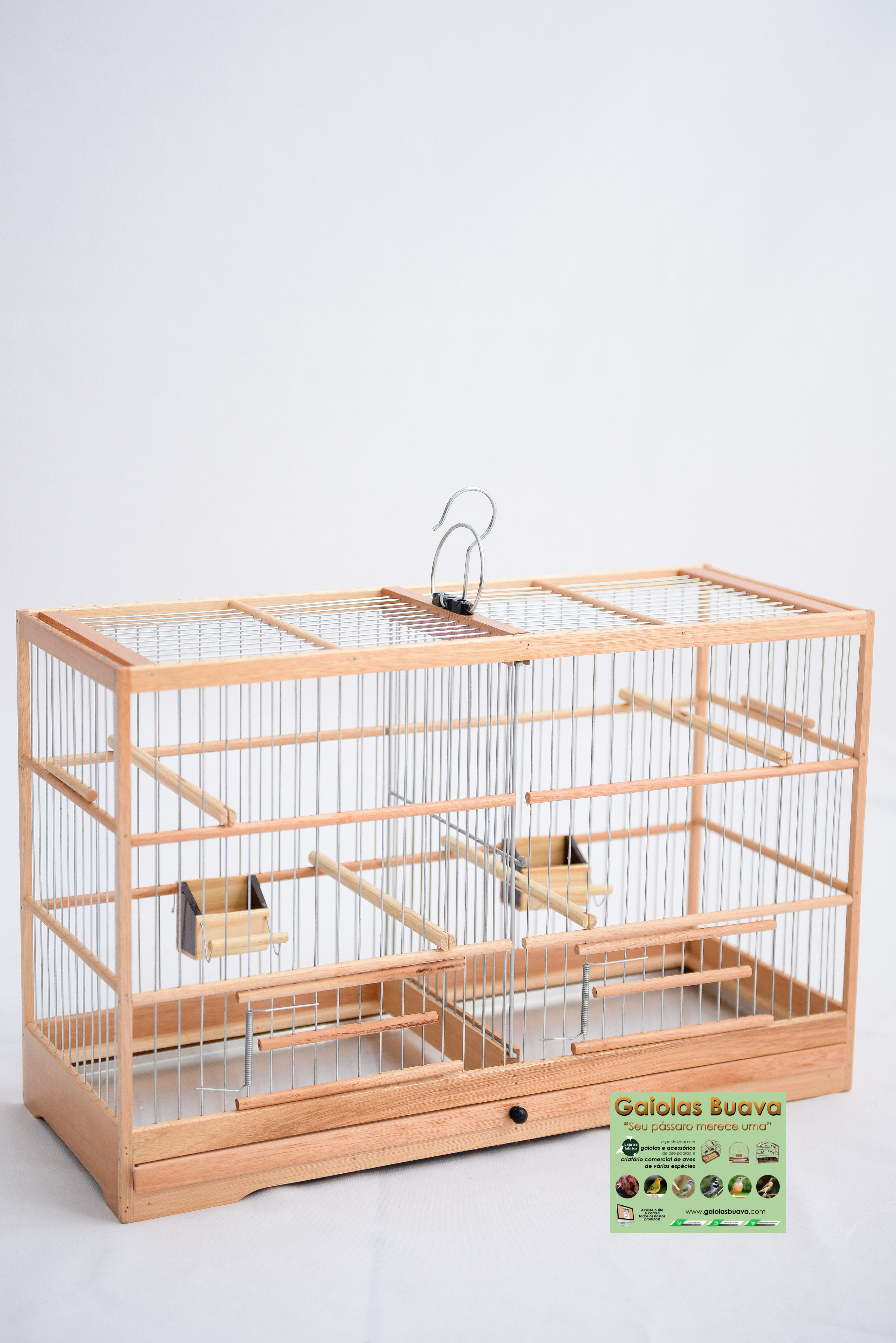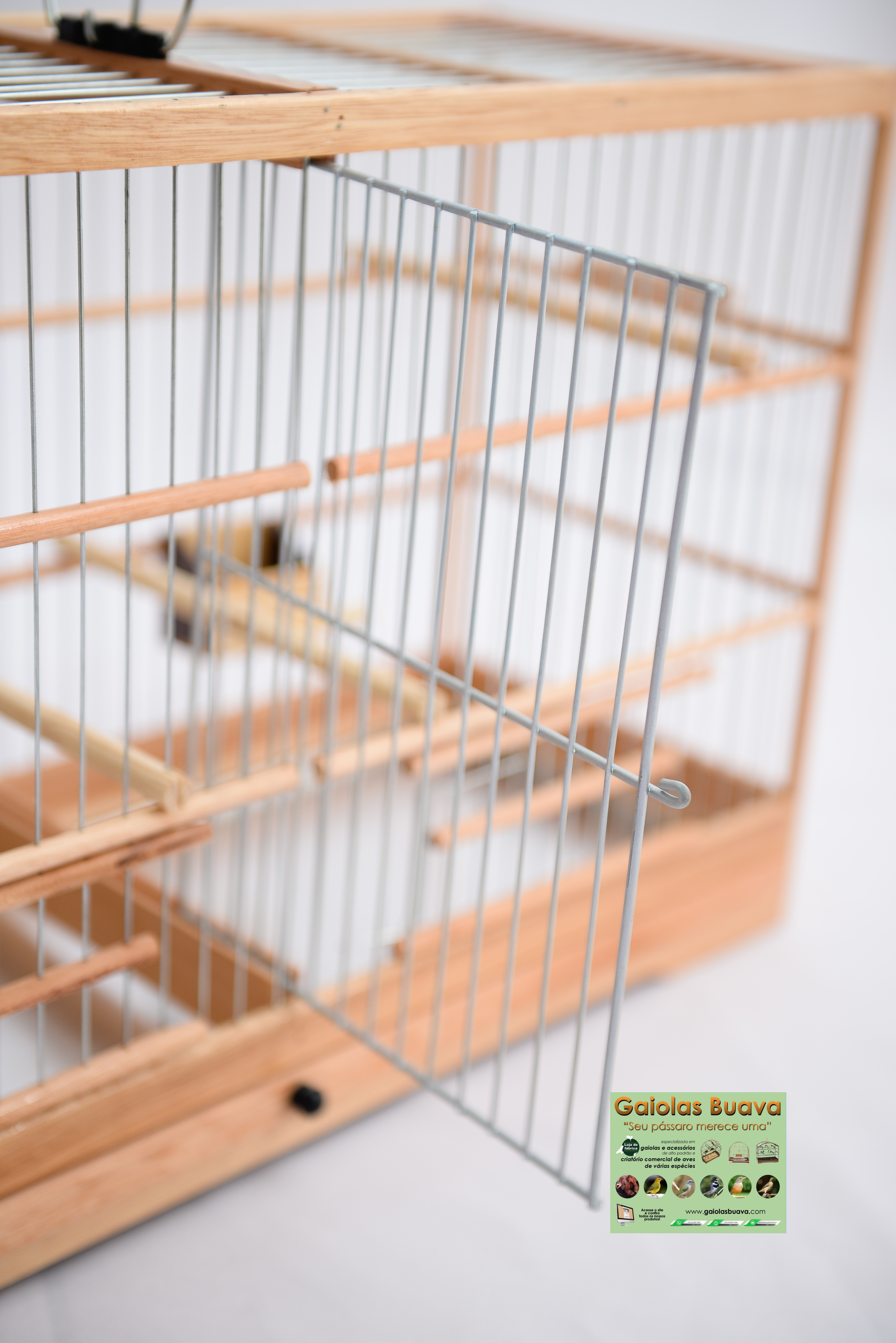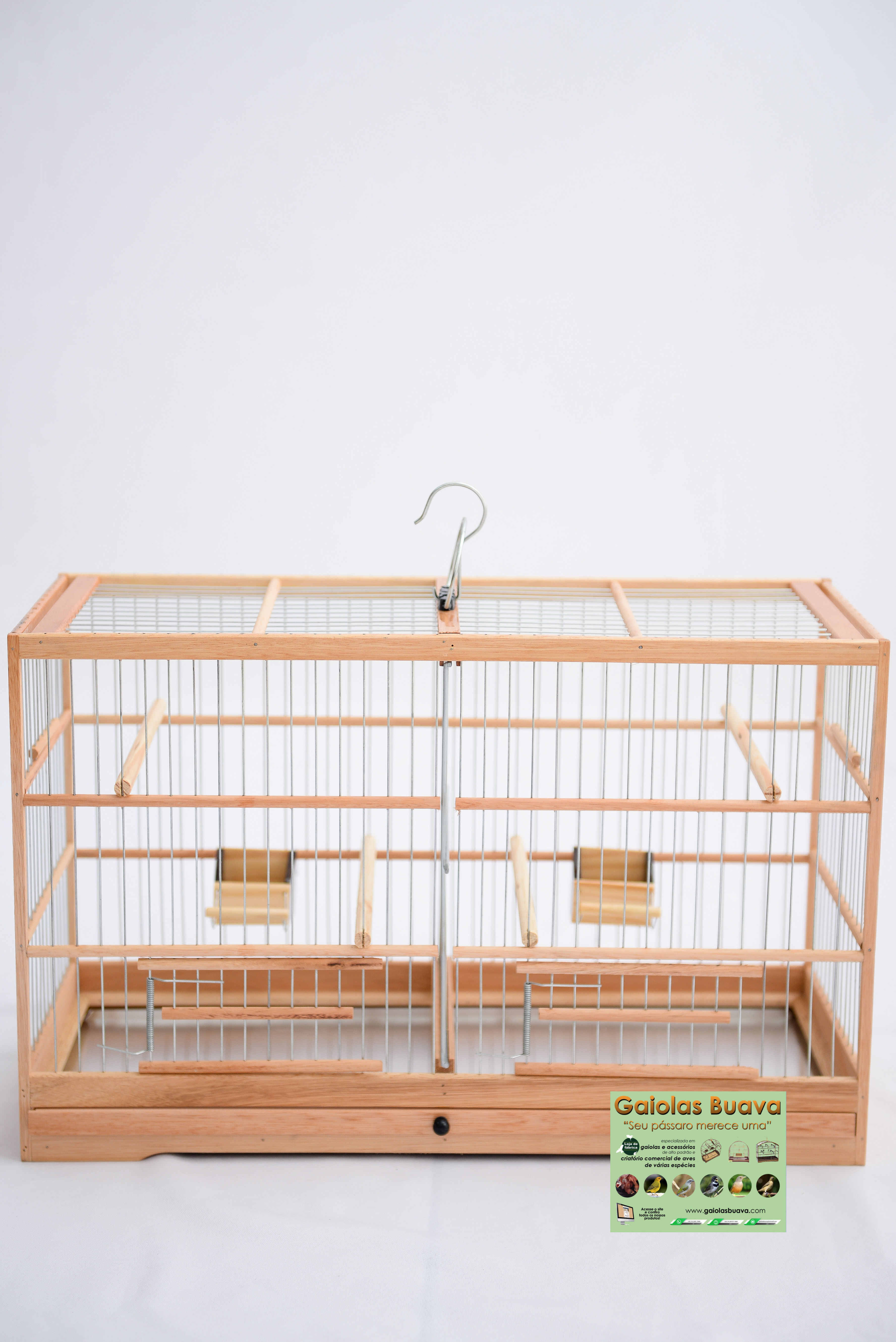 GAIOLA FEITA EM MADEIRAS NOBRES COM 4 PASSADORES LATERAIS E GRADE REMOVIVEL CENTRAL RETIRADA FRONTAL , FUNDO TAMBEM RETIRADA FRONTAL, COM DUAS PORTAS. ACOMPANHA: 4 POLEIROS MEDIDAS : ALTURA 32 CM LARGURA 20 CM COMPRIMENTO: 50 CM