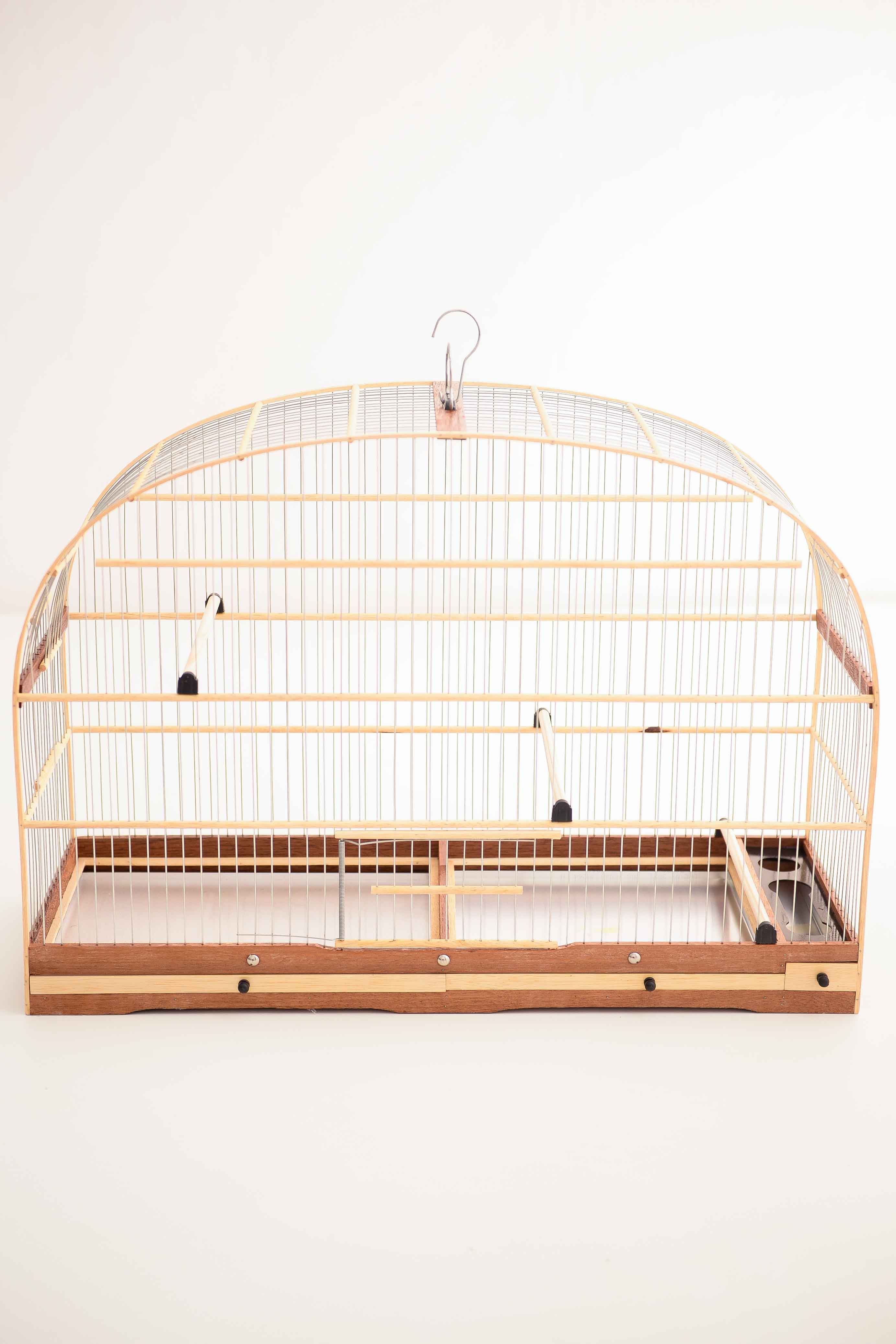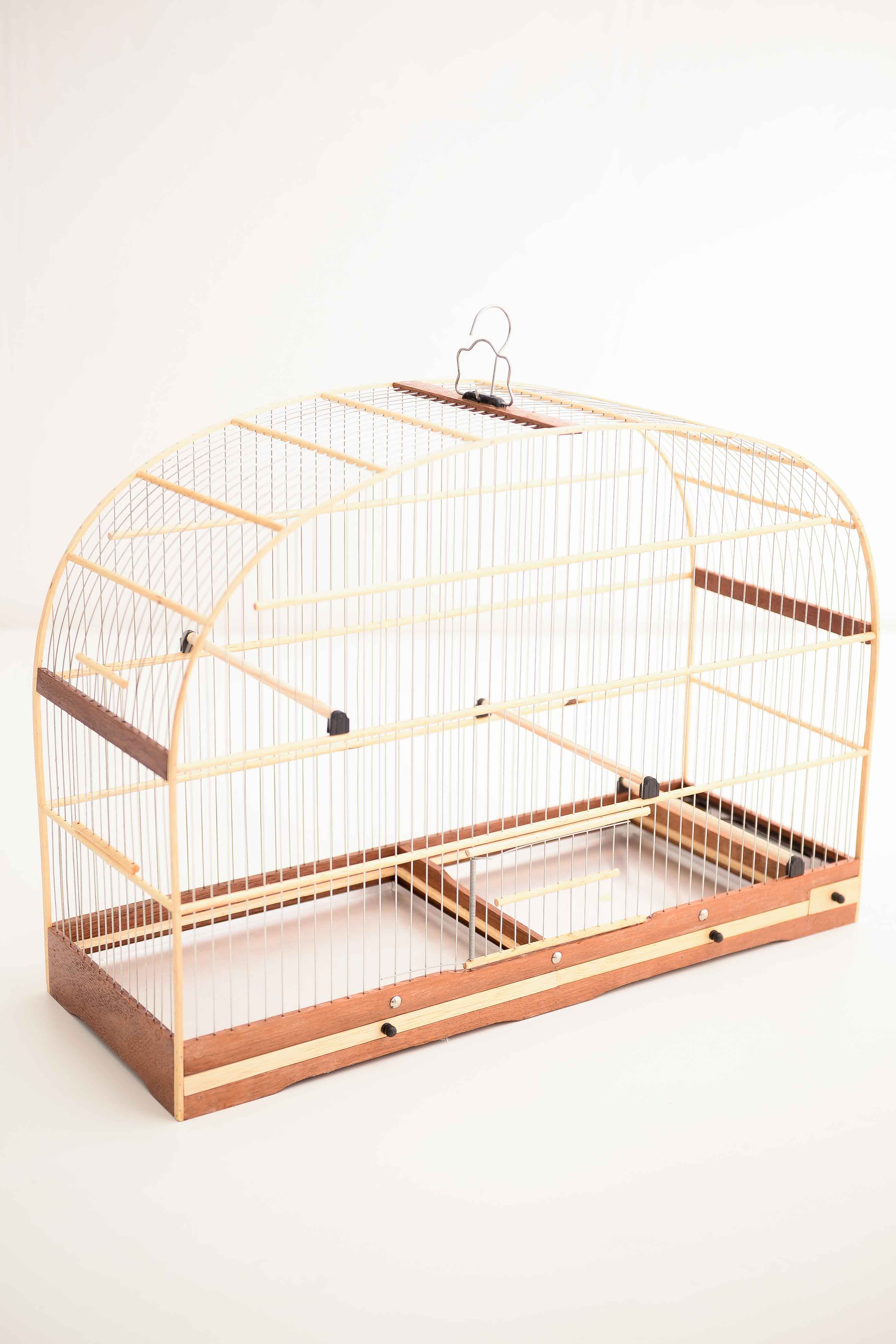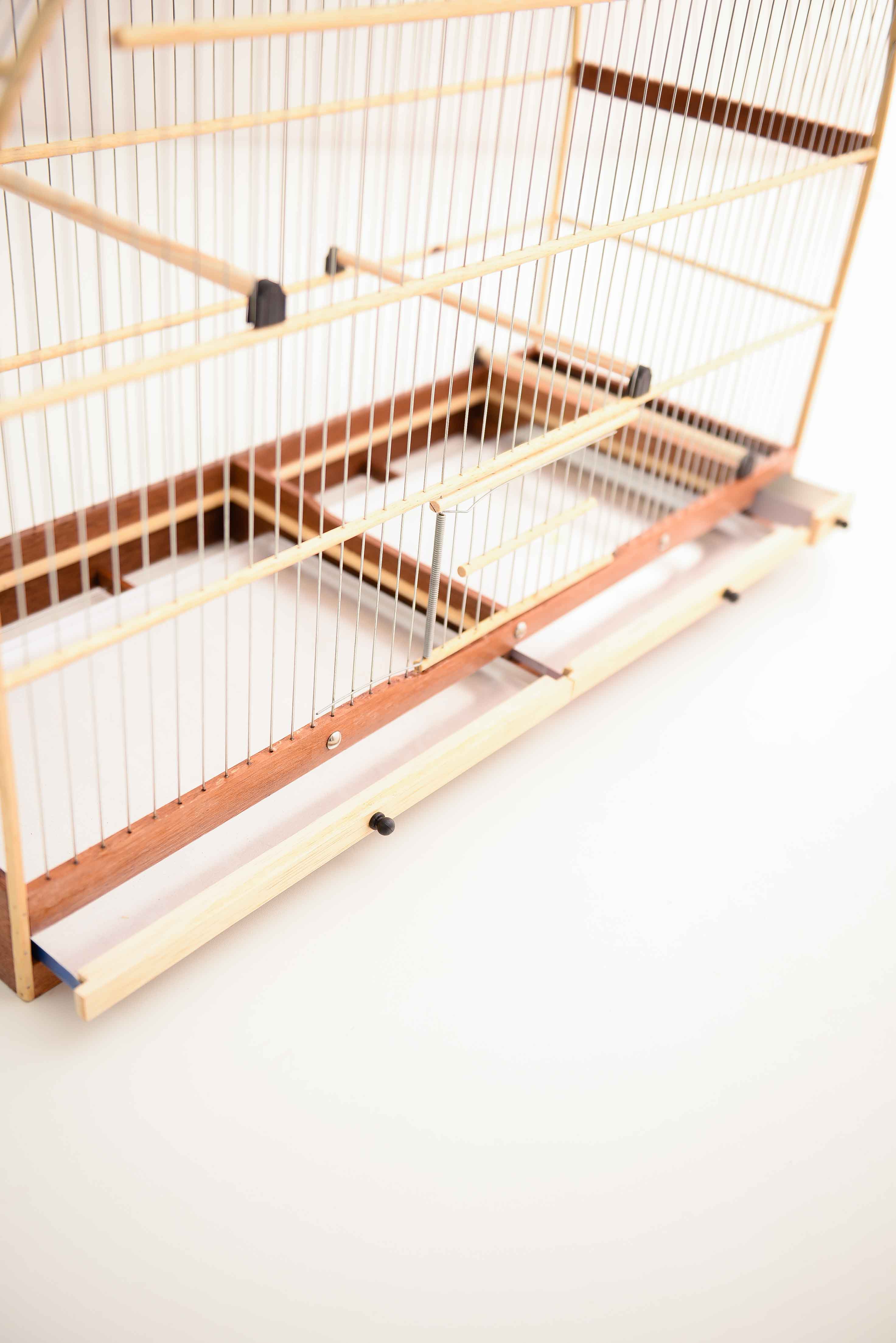 Ótimo gaiolão de 68 cm de comprimento, feito de madeira de cedro e tecido em arame, em malha fina, com bandeja de fundo dividida em 2(duas) partes, ambas com abertura vertical, acompanha puxadores na bandeja e no cocho. Além disso, a gaiola contém um passador lateral de porta estilo guilhotina de abertura vertical, porta principal de mola, gancho de 2(duas) funções simples e 3(três) poleiros com presilhas, que super combinam com o visual do gaiolão!