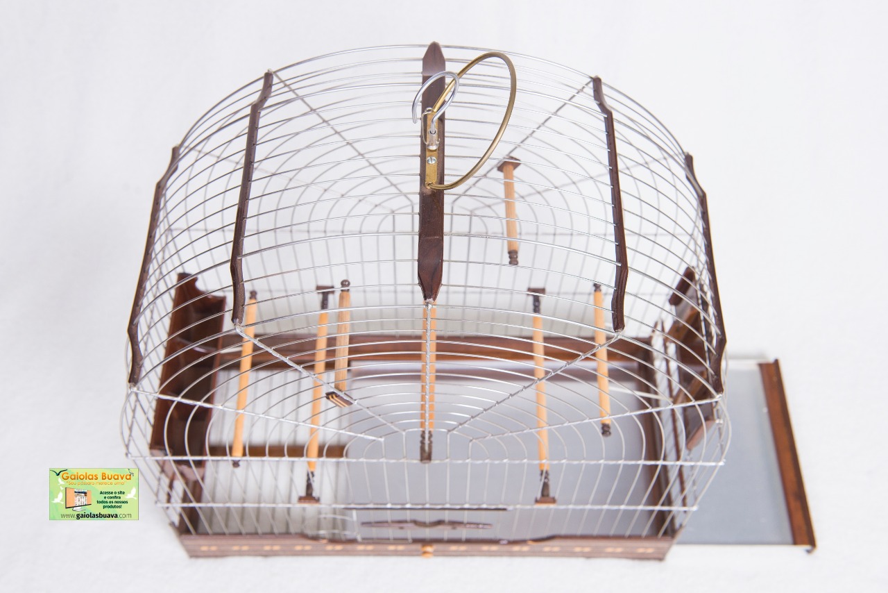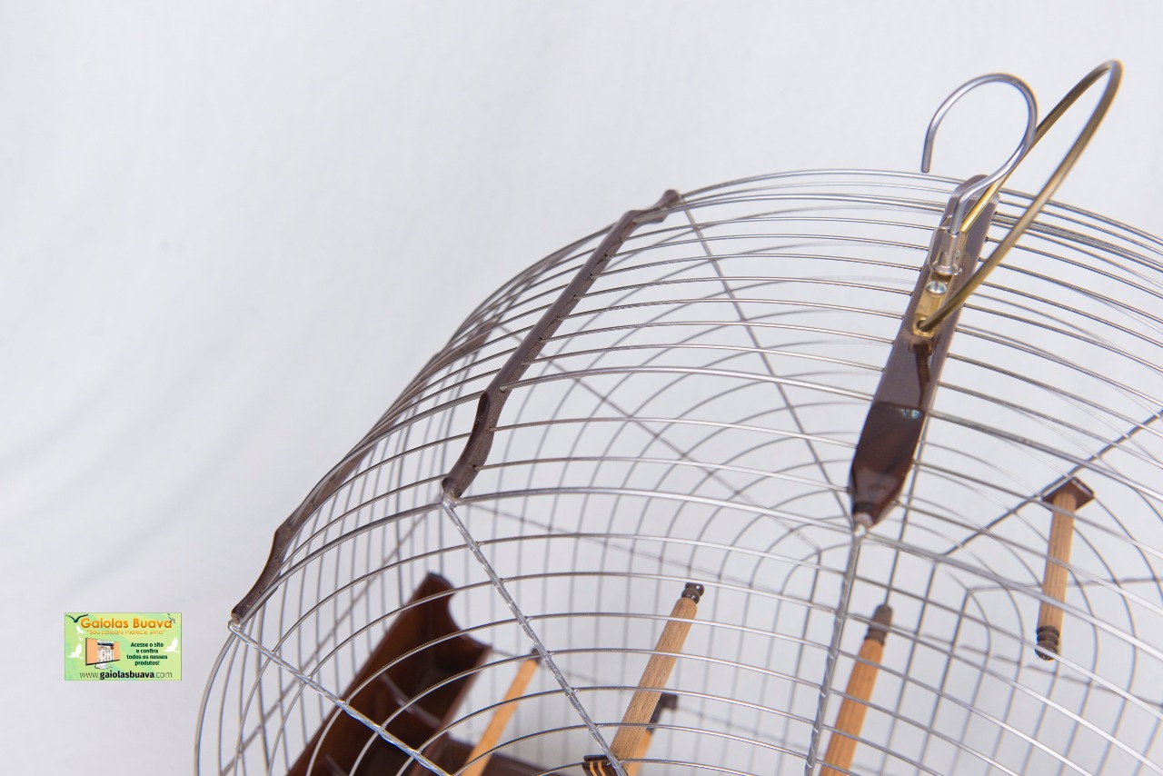 GAIOLA Nº 4 IMBUIA COPA LISA ABAULADA INOX COCHO ALTO   Banheira Média Cônica Cristal Com Poleiro E Gancho Código: