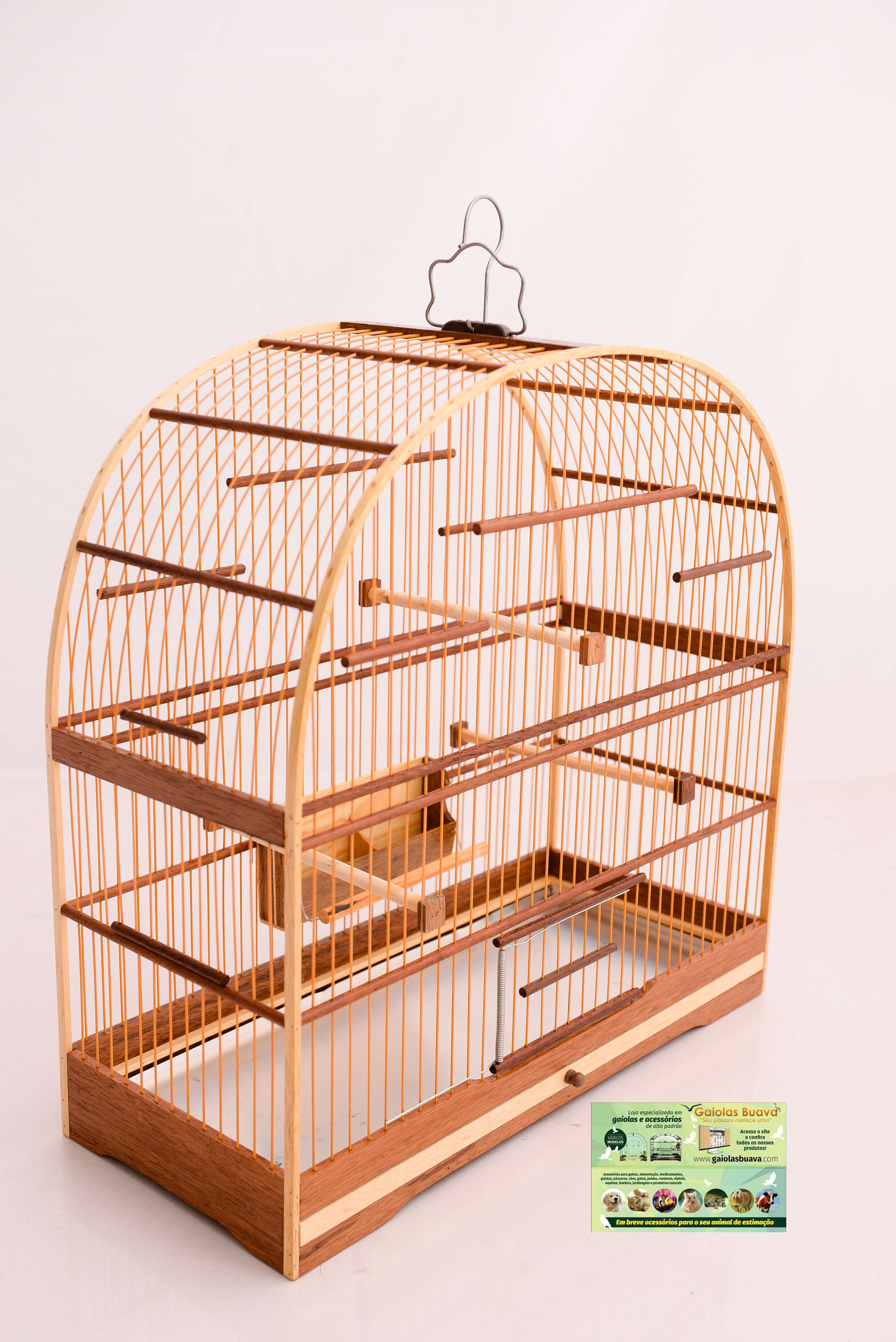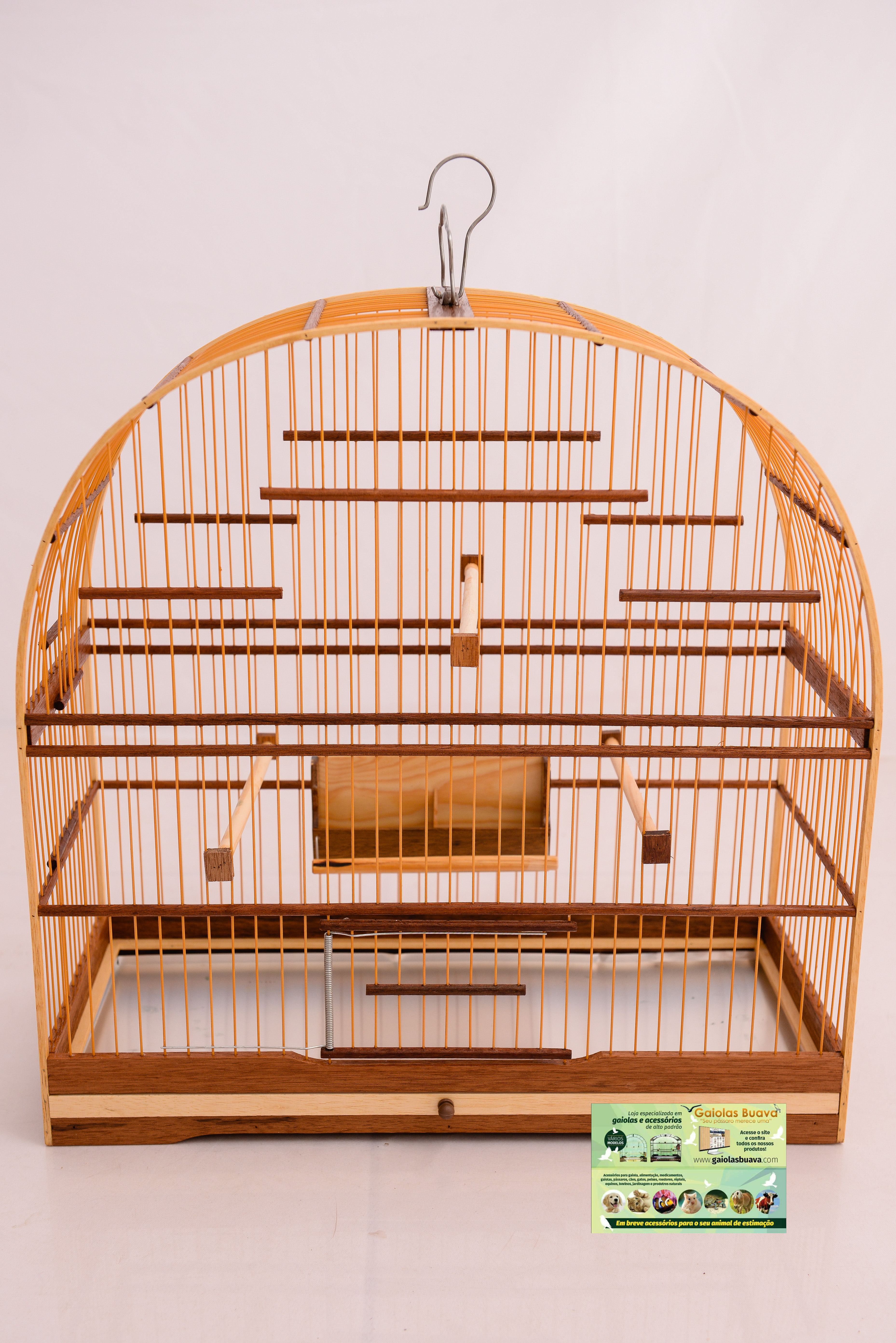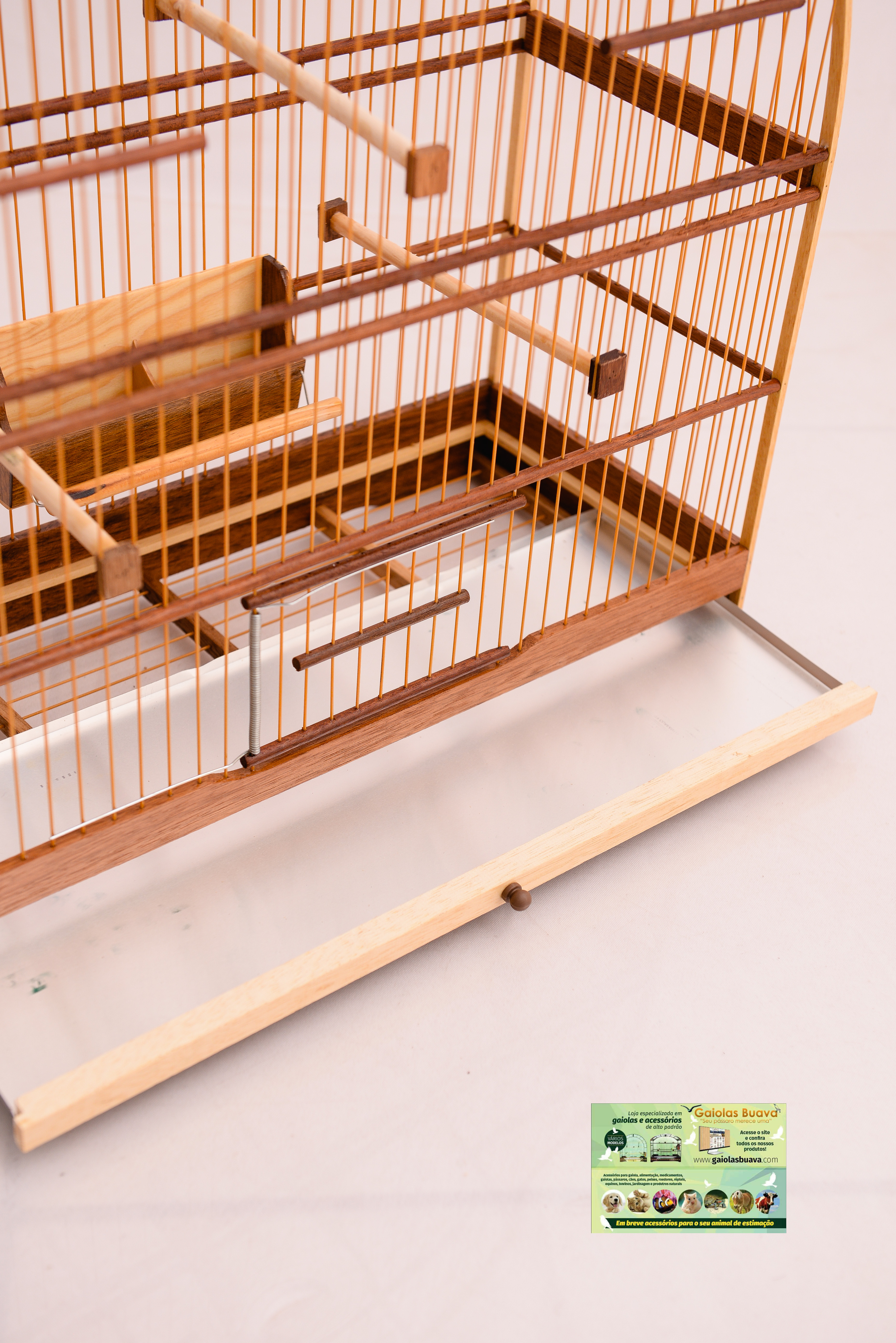 GAIOLA Nº 4 CEDRO FIBRA COCHO ALTO MALHA FINA FUNDO REMOVÍVEL PELA FRONTAL 1 PORTA DE MOLA 1 PASSADOR LATERAL 3 POLEIROS 1 ALÇA CARA DE GATO + GANCHO