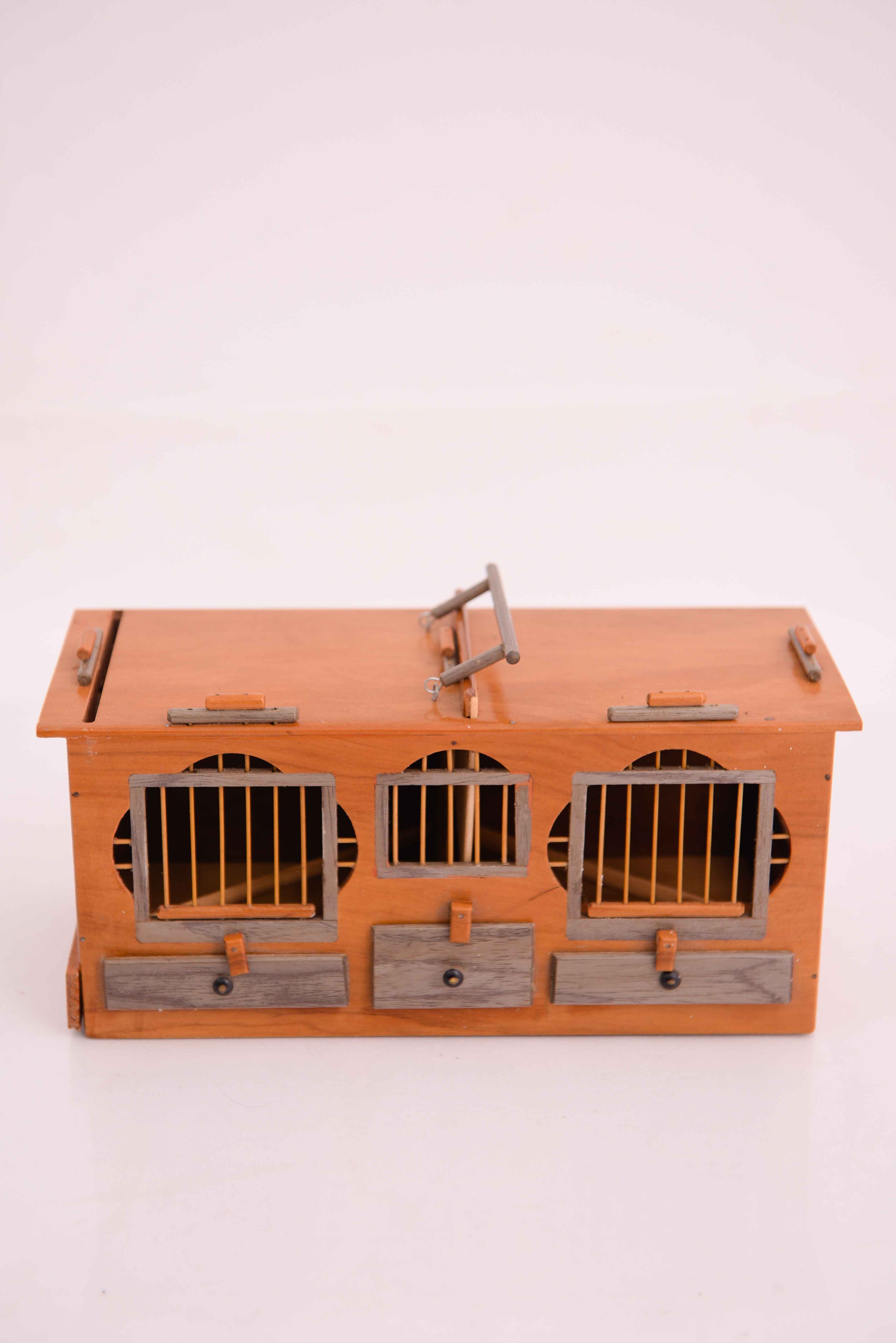 Transporte para canários, utilizado para passeios, esquentar os machos rinhas, e torneios, a madeira é toda envernizada.