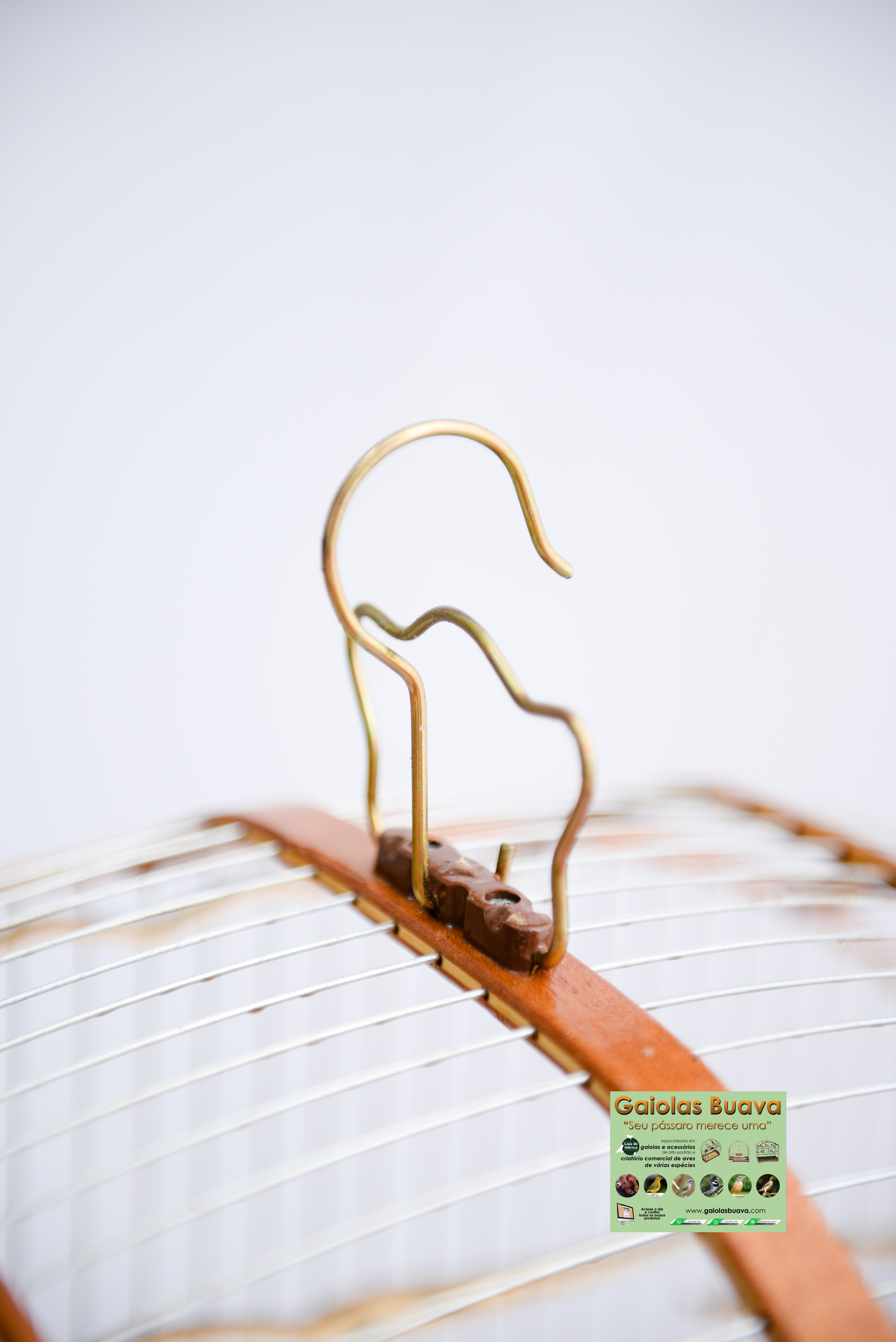 GAIOLA Nº 8 ABAULADA CEDRO ESCURO - COCHO BAIXO - ARAME - GR   JOGO DE PRESILHAS DE MADEIRA - CLARA - MALHA FINA