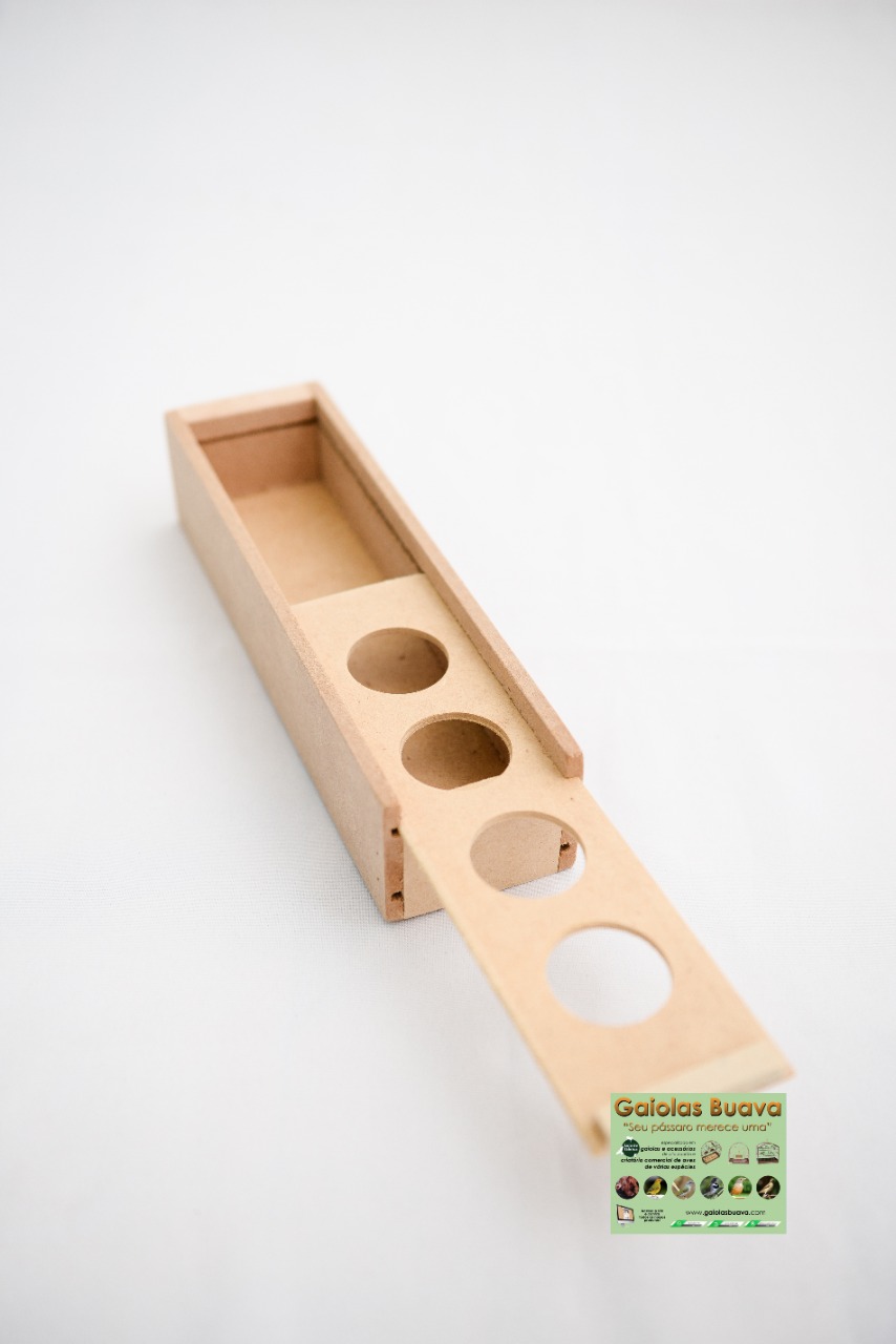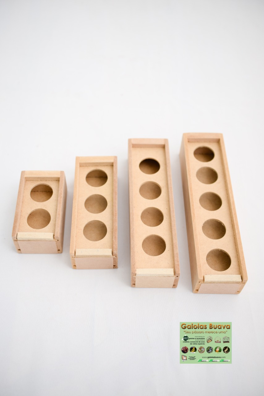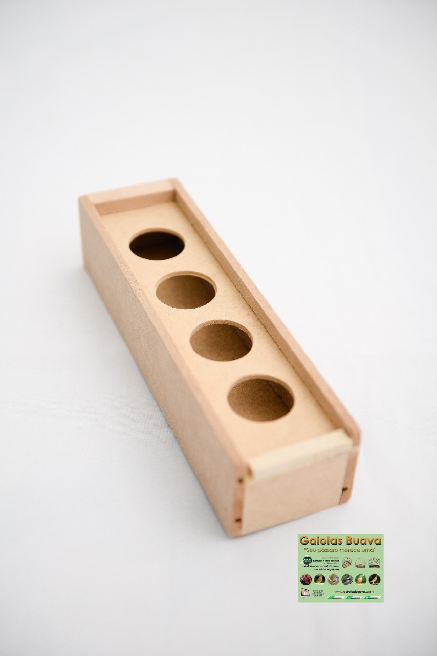 COMEDOURO EM MADEIRA 4 FUROS   CONTENSOR ANILHADOR DE PÁSSAROS TOP