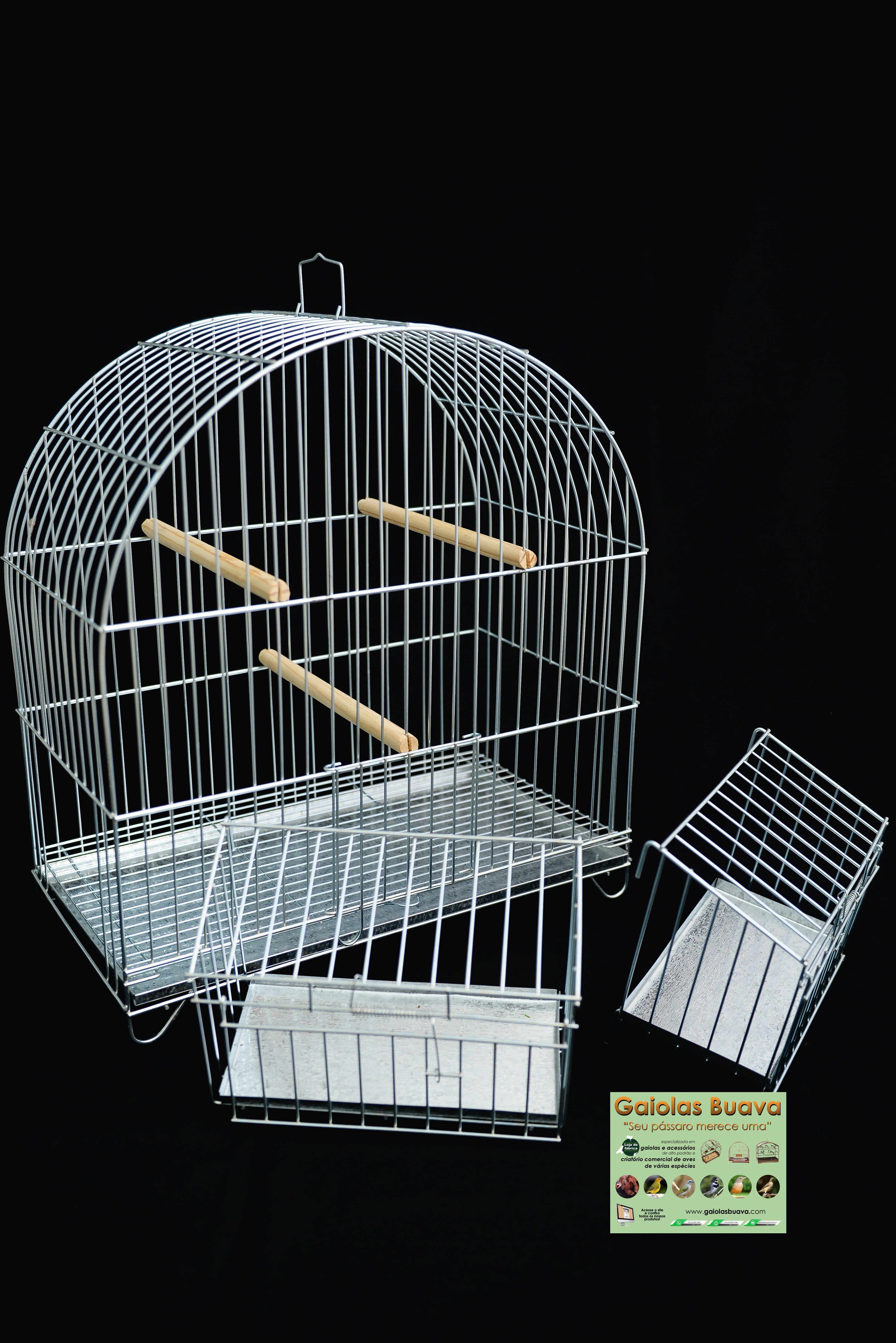 GAIOLA DE SABIÁ COM METAL GALVANIZADO COM BOJO E GRADE ANTI-   TRAMELA P/ COCHOS PRATA