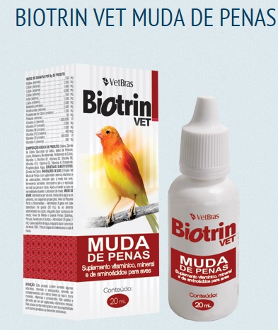 O BIOTRIN VET MUDA DE PENAS é um suplemento mineral, vitamínico e de aminoácidos, indicado para a muda das aves, fornecendo nutrientes necessários para a reposição normal das penas e bicos. Ajuda a manter as aves na normalidade durante o processo de muda.