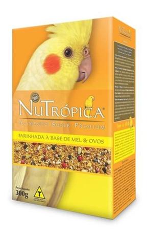 Indicação do produto Nutrópica à base de mel e ovos é um alimento completo indicado para calopsitas, agapornis, periquitos e demais psitacídeos de pequeno porte. Cientificamente formulado para suprimir as carências nutricionais típicas das aves alimentadas com sementes, Nutrópica à base de mel e ovos utiliza uma combinação exclusiva das mais nobres matérias-primas, incluindo mel, ovos e grãos integrais (aveia, trigo, linhaça, sarraceno) que na quantidade ideal, proporcionam os níveis ótimos de nutrientes necessários para promover mais saúde, beleza, bem-estar e longevidade para sua ave. Nutrópica à base de mel e ovos é especialmente recomendado para os períodos de crescimento, muda de penas e reprodução. A partir da utilização exclusiva de ingredientes com padrão de consumo humano, garantindo para sua ave o que há de melhor em nutrição, evitando os riscos típicos associados, aos alimentos produzidos com subprodutos de panificação, farelos e outros ingredientes de inferior qualidade. Recomendação de consumo Para aves alimentadas com misturas de sementes, Nutrópica à base de mel com ovos deve ser fornecido diariamente, em comedouro próprio, ficando sempre a disposição da ave. Para as aves que são alimentadas com alimentos extrusados de alta qualidade, Nutrópica à base de Mel com Ovos pode ser oferecido de duas a três vezes por semana como uma opção alimentar. Para facilitar a adaptação, o alimento pode ser levemente umedecido. Neste caso o alimento deverá ser substituído duas vezes ao dia. Não recomendamos adição de ovos qualquer tipo de suplementação. Frutas, verduras e legumes frescos podem ser oferecidos, desde que não ultrapassem 20% do peso total do alimento. Água limpa e fresca deve ser oferecida diariamente. O veterinário deve ser visitado regularmente.
