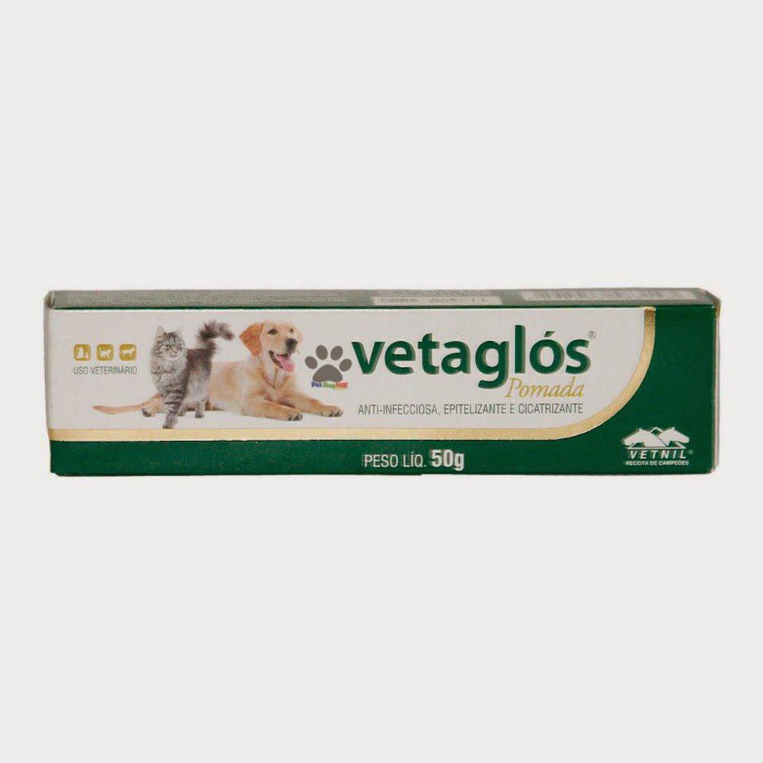 A Gentamicina é ativa contra Enterobacter aerogenes, Escherichia coli, Klebsiella pneumoniae, espécies de Proteus indol-positivas e indol-negativas, Pseudomonas aeruginosa, algumas espécies de Serratia não pigmentada e muitas espécies de Salmonella e Shigella. A Sulfanilamida e Sulfadiazina são ativas contra espécies de Streptococcus, Proteus, Pasteurella e Salmonella, além do Staphylococcus aureus e E. coli. Também têm alta eficácia contra Clostridium perfringens e contra gêneros Bacteroides e Fusobacterium. A atividade antibacteriana das sulfas é aumentada pela ureia presente na fórmula de Vetaglós Pomada. Vetaglós Pomada possui também em sua fórmula a Vitamina A que tem extraordinária ação sobre o epitélio, auxiliando na manutenção e regeneração do mesmo.Indicação do produto * Nos ferimentos superficiais de pele ou de difícil cicatrização; * Nos ferimentos infectados das regiões de articulações muito móveis; * Nas feridas e pisaduras infectadas, provocadas por selas e arreios; * Nas feridas ou escaras de decúbito infectadas, perdas epiteliais, lesões de escoriações, de coceiras do casco e da pele; * Nas úlceras infectadas e purulentas, furúnculos e abscessos; * Nas queimaduras e erupções vesiculosas e varioliformes; * Nas dermatites (inflamação da pele) e rachaduras da pele; * Nas pododermatites necrosantes (necrobacilose dos cascos), como coadjuvante; * Na proteção das feridas cirúrgicas.Nível de garantia do produto Cada 100 g contém:Gentamicina (Sulfato)........................................................0,5 gSulfanilamida....................................................................5,0 gSulfadiazina......................................................................5,0 gUréia................................................................................5,0 gVitamina A................................................................120.000 UIExcipiente q.s.p..............................................................100,0 g Modo de usarAplicar uma fina camada, 1 a 2 vezes ao dia, após prévia limpeza das áreas afetadas.O tratamento deverá ter continuidade por 48 horas após o desaparecimento dos sintomas. ApresentaçãoBisnagas de 50 g.