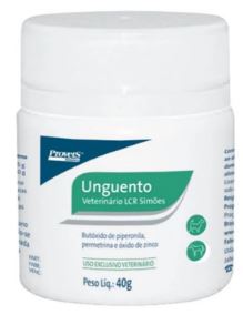 O produto UNGUENTO VETERINÁRIO LCR SIMÕES é indicado como larvicida, cicatrizante e repelente de insetos, no tratamento de miíases (bicheiras) em geral e berne, ferimentos causados pela tosquia, no umbigo dos recém-nascidos, nas castrações, nas descornas, nas amputações das caudas, nas marcações, nas arranhaduras, nas pisaduras e demais lesões superficiais da pele, feridas e podridão dos cascos, assim como, pequenas alterações cirúrgicas. Fórmula: Cada 100 g contém: Butóxido de piperonila ..................................................................................... 1,0 g Permetrina ...................................................................................................... 0,5 g Óxido de zinco ............................................................................................... 20,0 g Excipiente q.s.p. .......................................................................................... 100,0 g Modo de usar e posologia: Uso exclusivo externo, em aplicações dermatológicas. Secar o ferimento com um pano limpo ou gaze e aplicar o Unguento Veterinário LCR Simões, utilizando-se uma espátula ou bastão, de modo a cobrir toda a lesão com uma camada uniforme do produto. Repetir a aplicação diariamente até a completa cicatrização do ferimento.