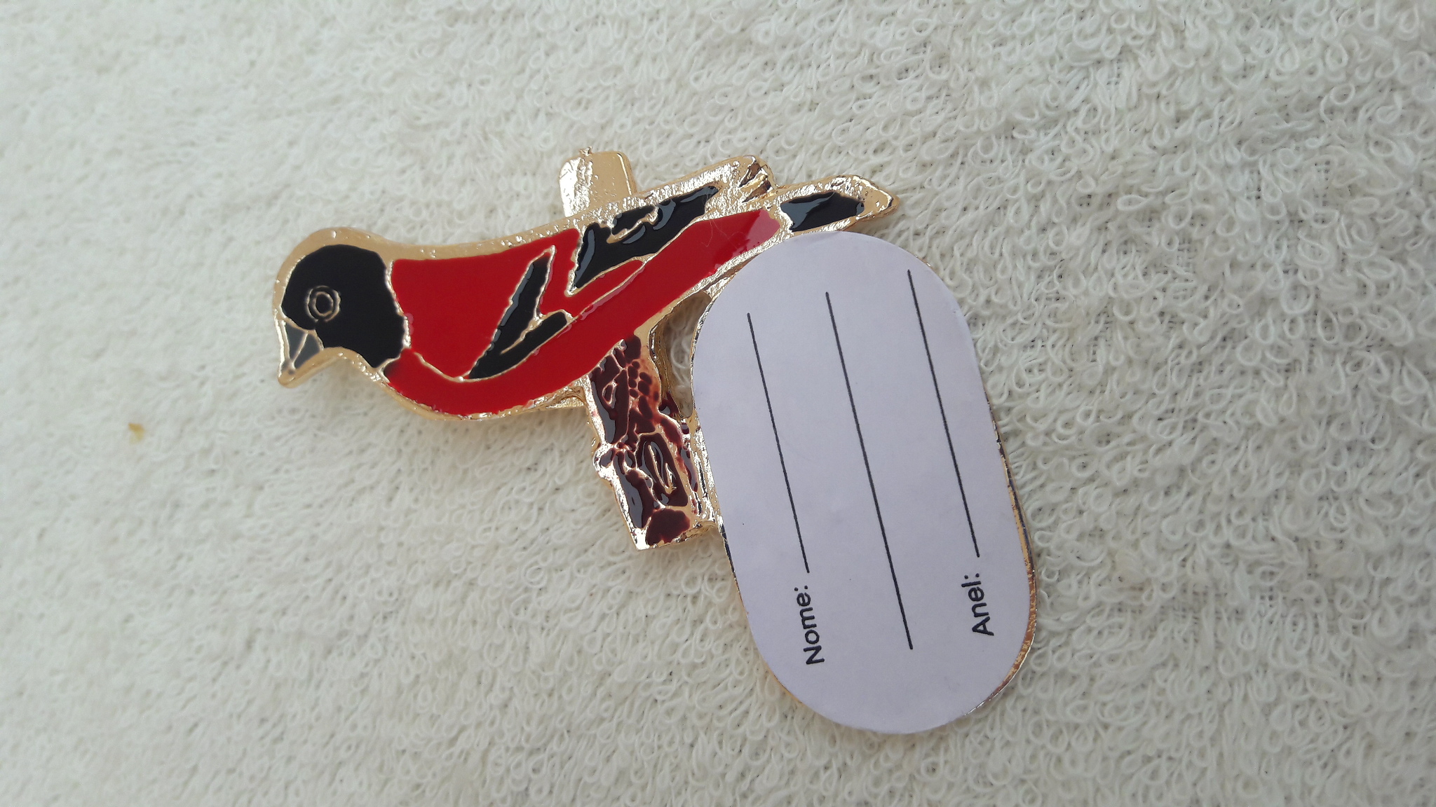 ORNAMENTO TARIM PINTASSILGO DA VENEZEULA COM PORTA NOME   BARRIL IMBUIA MALHA FINA