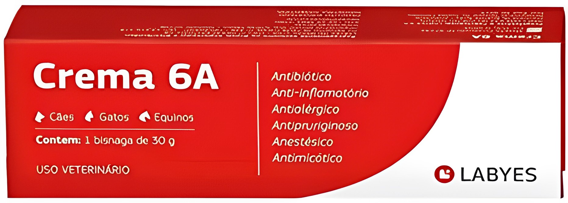 Crema 6A é uma pomada de uso dermatológico com o benefício de 6 ações: Antibiótica, anti-inflamatória, antialérgica, alívio de prurido, analgesia tópica e antifúngica.