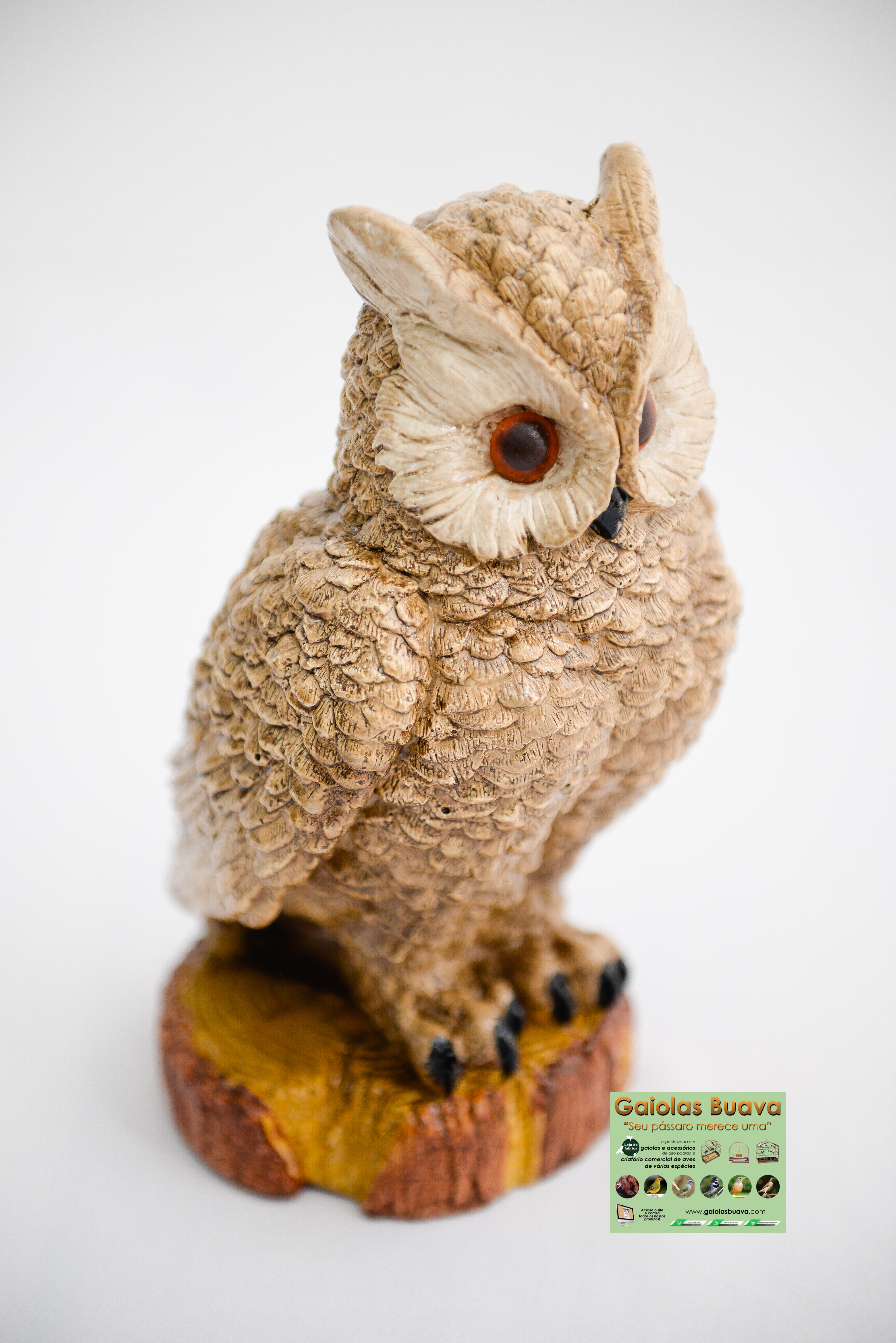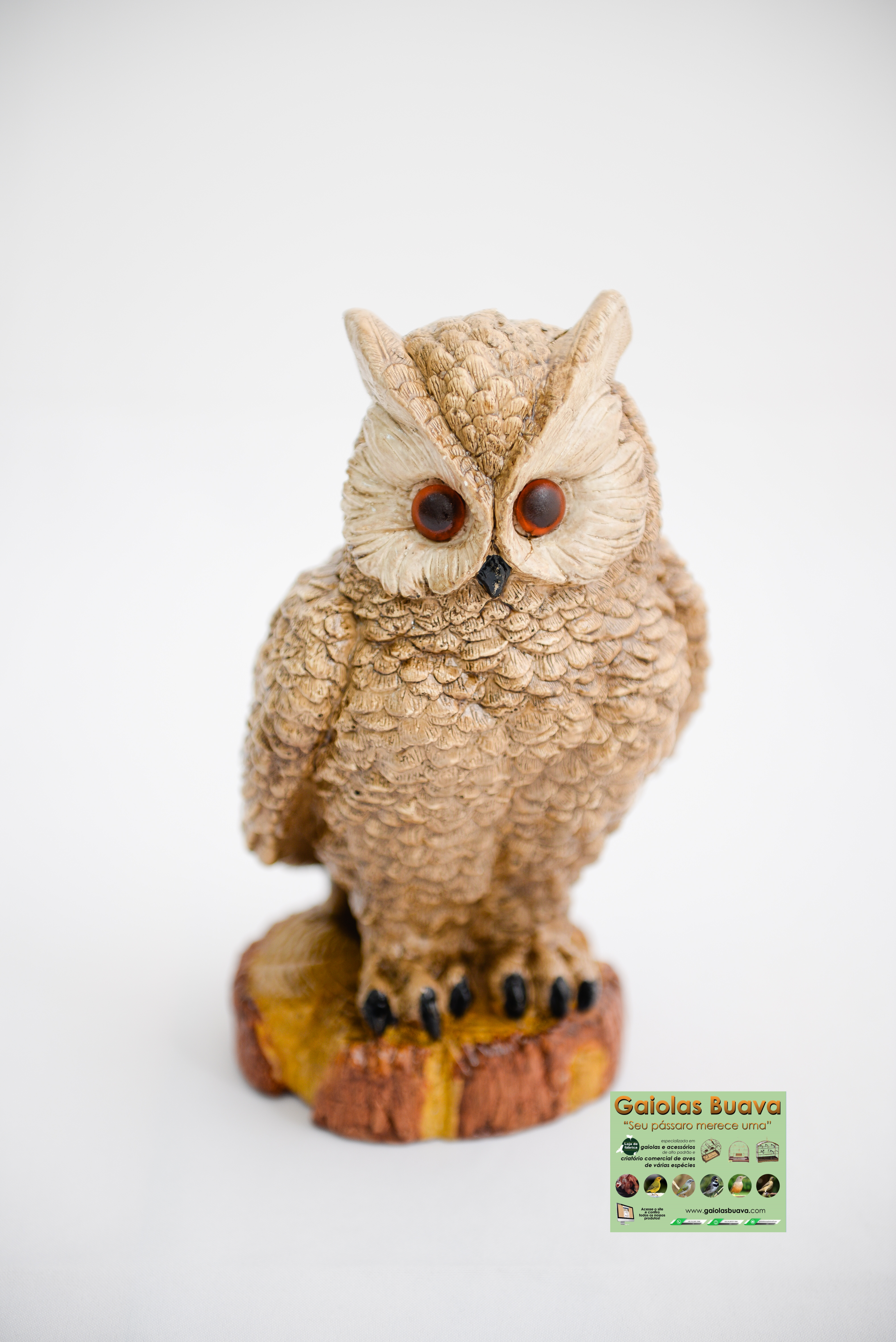 ESTATUETA DE CORUJA, FEITA EM GESSO, ACABAMENTO EM VERNIZ PU, OTIMÓ PARA DECORAÇÃO E MUITO INDICADO PARA ESPANTAR POMBOS, PARDAIS OU PÁSSAROS INDESEJADOS.