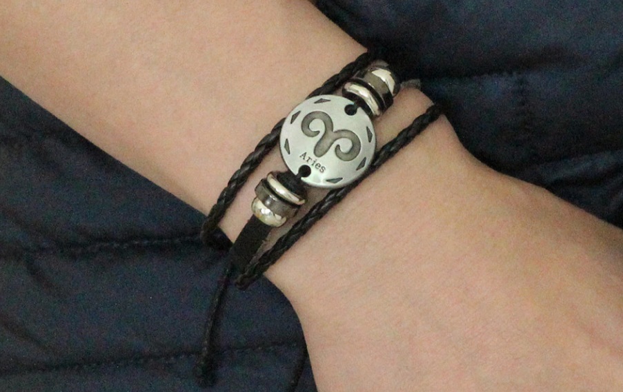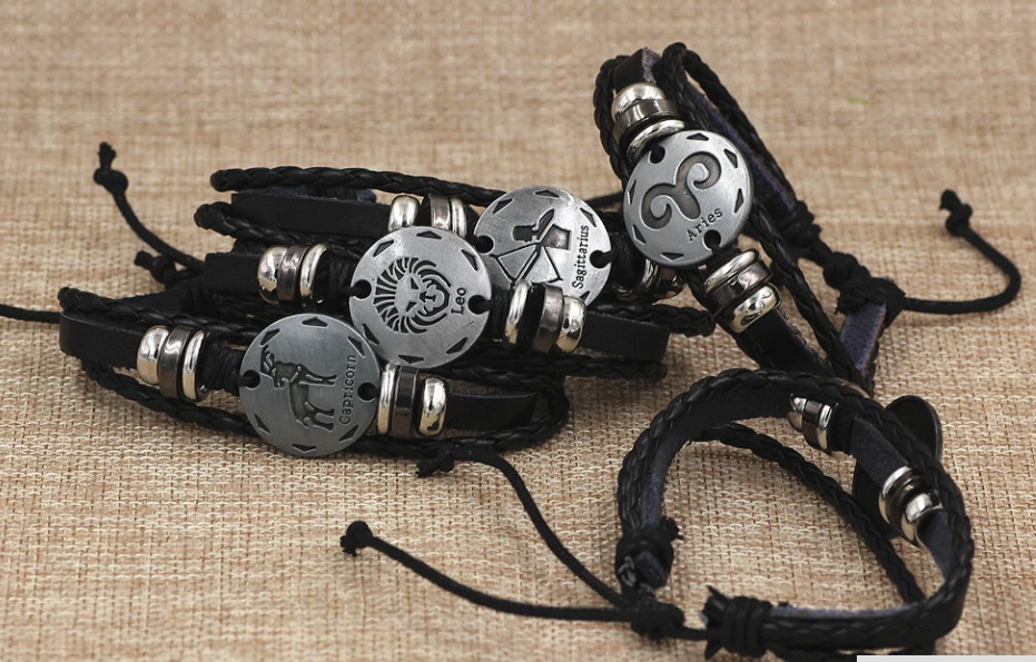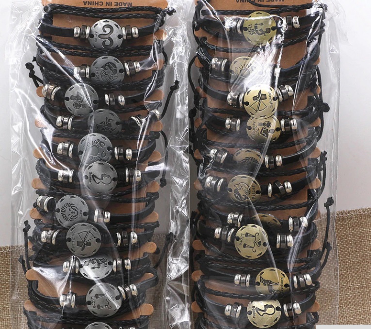 VirgEM /Sagitário/Aquário/Escorpião/Libra/encanto de prata 12 Constelação de Capricórnio Pulseira Homens Mulheres Trançado couro Pulseiras & Bangles1) Material: Liga + Couro 2) Comprimento: Comprimento Ajustável 3) Cores: como a foto 4) Embalagem: 1 peça pulseira/ordem 5) Peso: Cerca de 15 g/peça