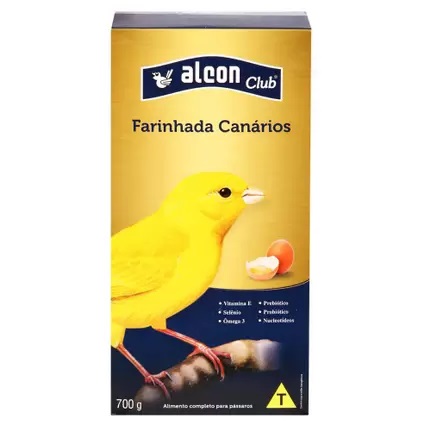 Alcon Club Farinhada com Ovo para Canários é indicado para a alimentação deCanários e outros pássaros em períodos de maior necessidade nutricional, como na época de reprodução e de muda de penas. Pode também ser utilizado, ocasionalmente, no período de manutenção. Gemas de ovos desidratadas utilizadas em sua composição garantem a segurança sanitária frente aos riscos de utilização de ovos frescos. Apresenta Nucleotídeos, Prebiótico eProbiótico, que favorecem o desenvolvimento da flora intestinal benéfica, melhorando o aproveitamento dos nutrientes. Os componentes da formulação não alteram a coloração padrão da plumagem.