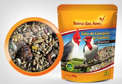 LINHA GOLD MIX PREMIUM – GALO DE CAMPINA E CARDEALAlimento completo e balanceado para Cardeal e Galo de Campina. Disponíveis nos tamanhos: 500g Composição Básica: Sementes em grãos (alpiste, painço verde, painço comum, painço vermelho, painço preto, trigo mourisco, arroz com casca, cártamo, senha, quinua (mín. 0,15%), chia (mín. 0,15%), trigo em grãos, milheto), Maçã desidratada, Crisálida integral desidratada, Milho moído*, Farelo de arroz, Farelo de soja*, Amido de milho*, Óleo de soja*, Cloreto de sódio, Farinha de ostras, Sacarina sódica, Neoespiridina, Dióxido de silício, Aditivo antifúngico (0,01% – mistura dos ácidos propiônico, acético, fórmico e sórbico), Aditivo antioxidante (B.H.T.), Aditivo pigmentante (vermelho 40, verde folha, amarelo tartrazina), Dióxido de titânio, Aroma de frutas vermelhas.