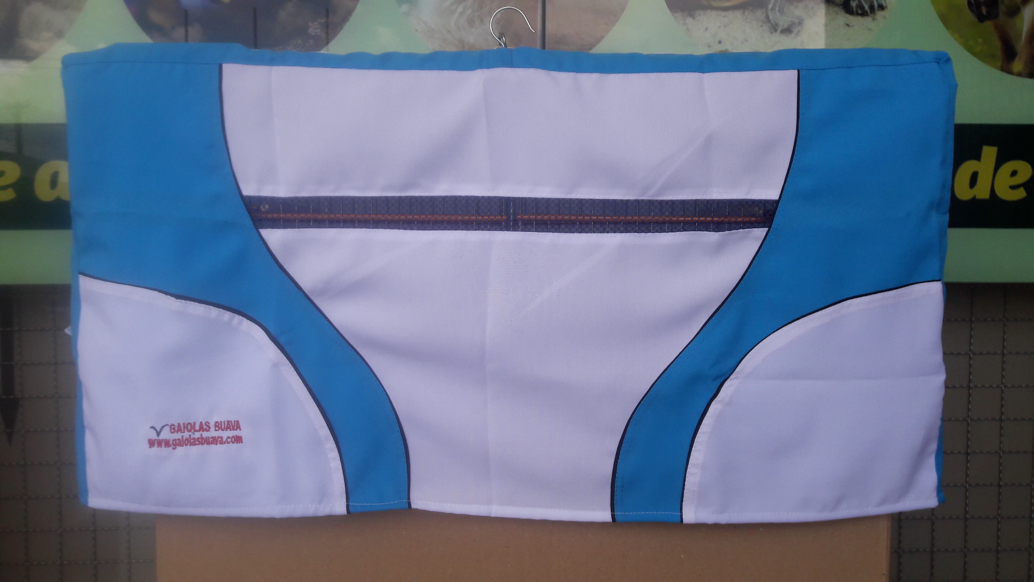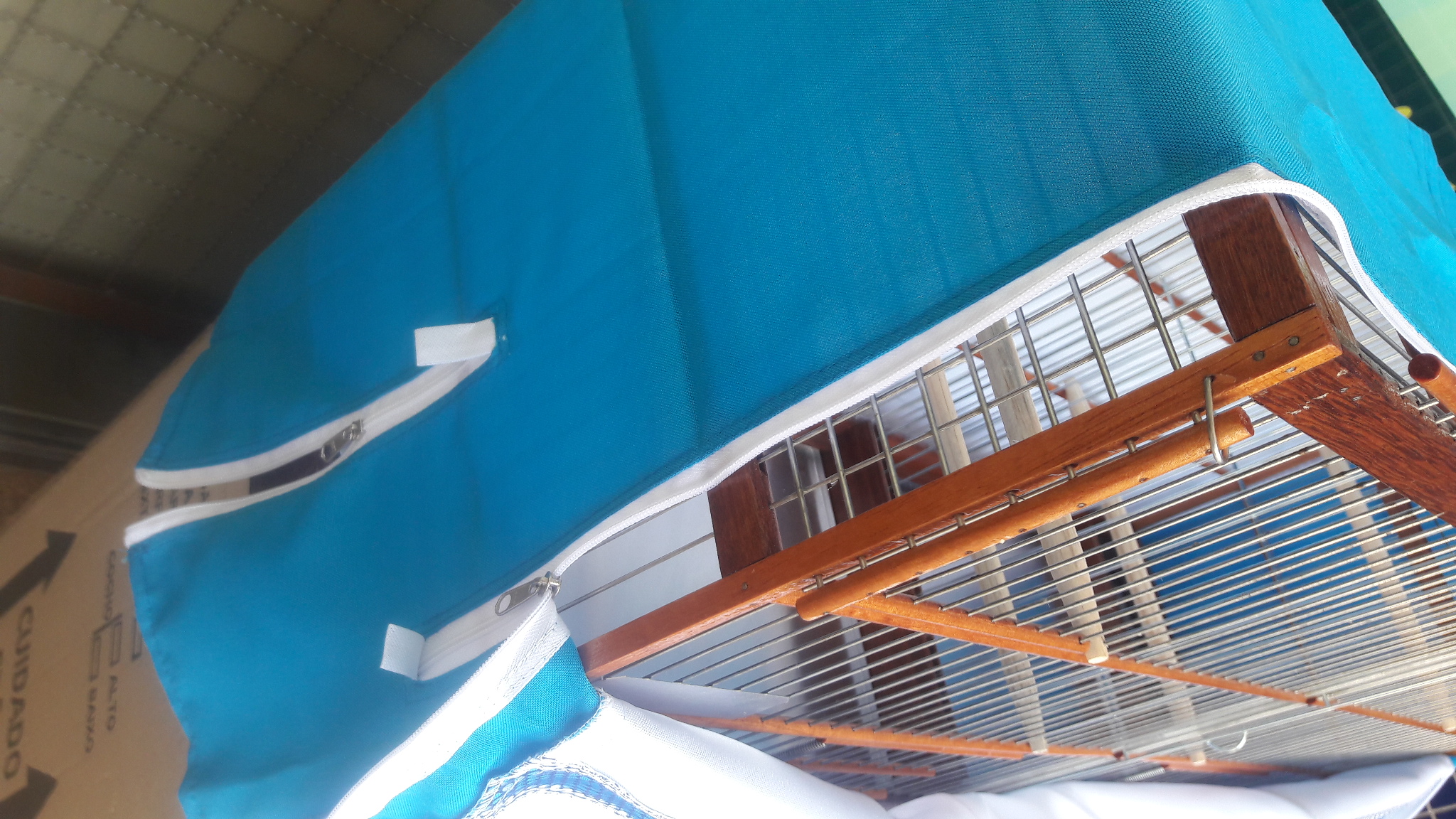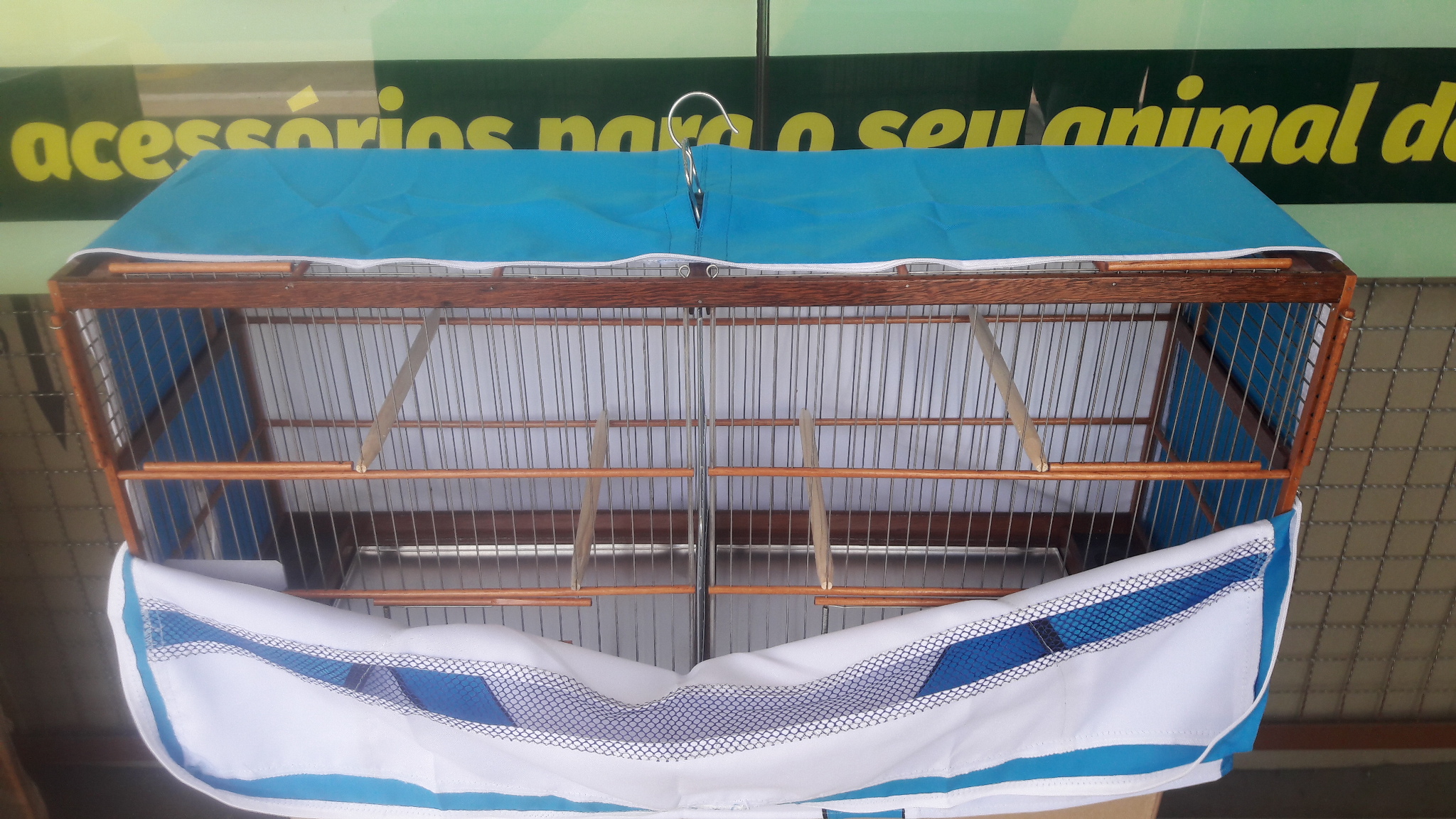 feita toda em tecido de otima qualidade, NAS CORES AZUL E BRANCA, COM ILHOR TRASEIRO PRA PREGO. ABERTURA FRONTAL COM REGULAGEM NO ZIPER, ,VENTILAÇÃO FRONTAL EM TELA ANTI MOSQUITOMAIS DETALHES NAS FOTOS MEDIDAS DA CAPA : COMPRIMENTO : 76.5 ALTURA : 39 LARGURA 26 SENDO TOLERAVEL 1 CM A MAIS NAS MEDIDAS DAS GAIOLAS OU PRA MENOS