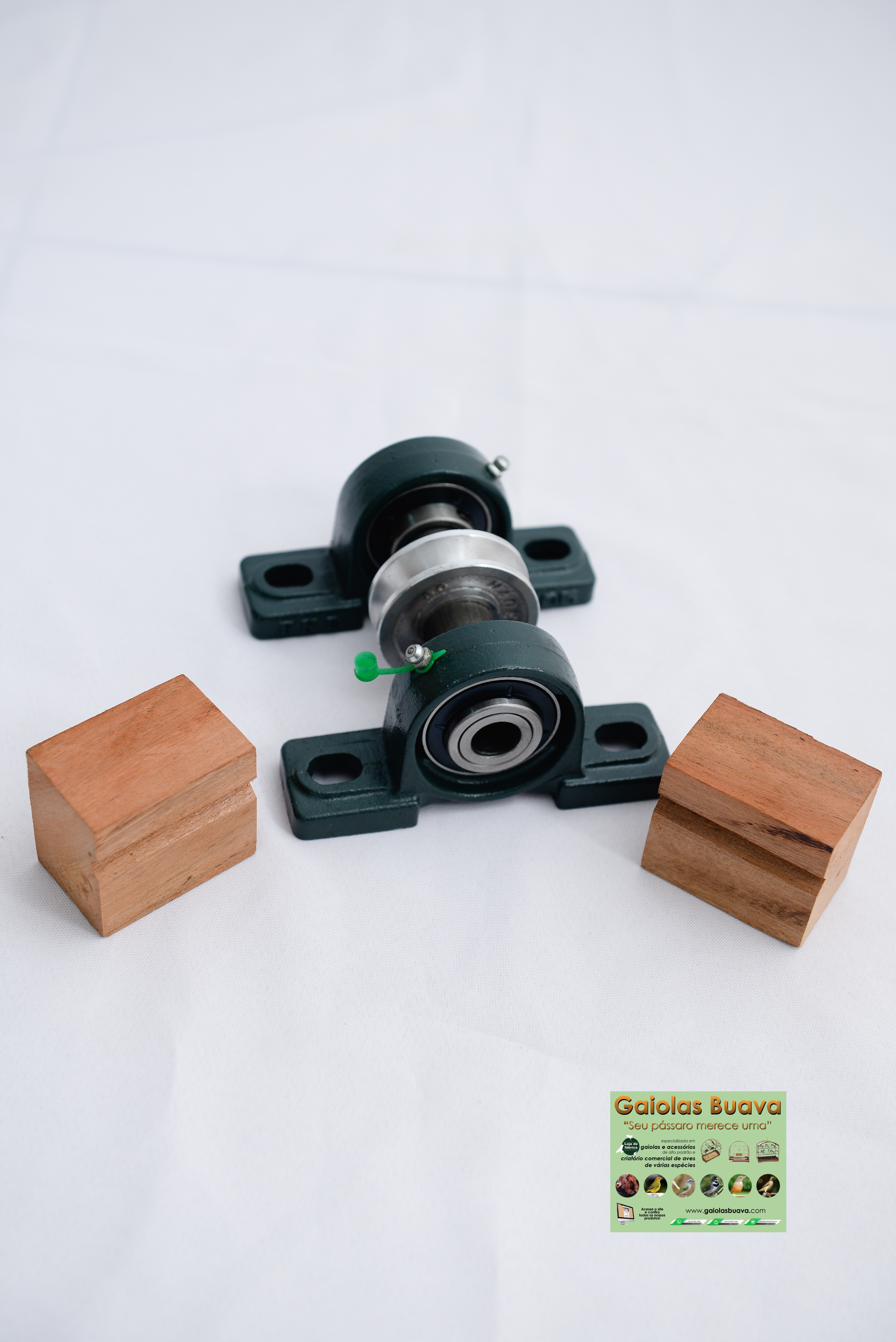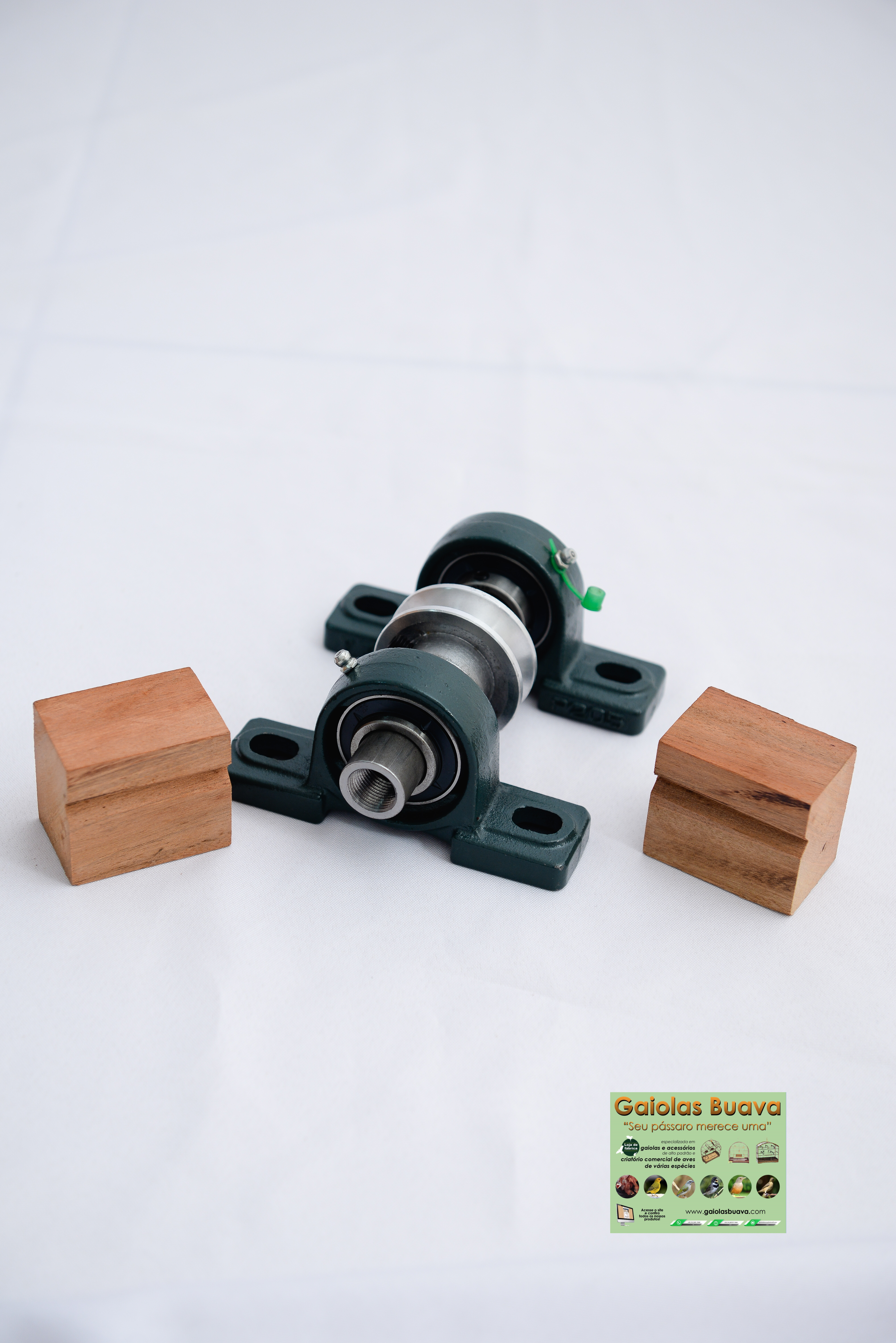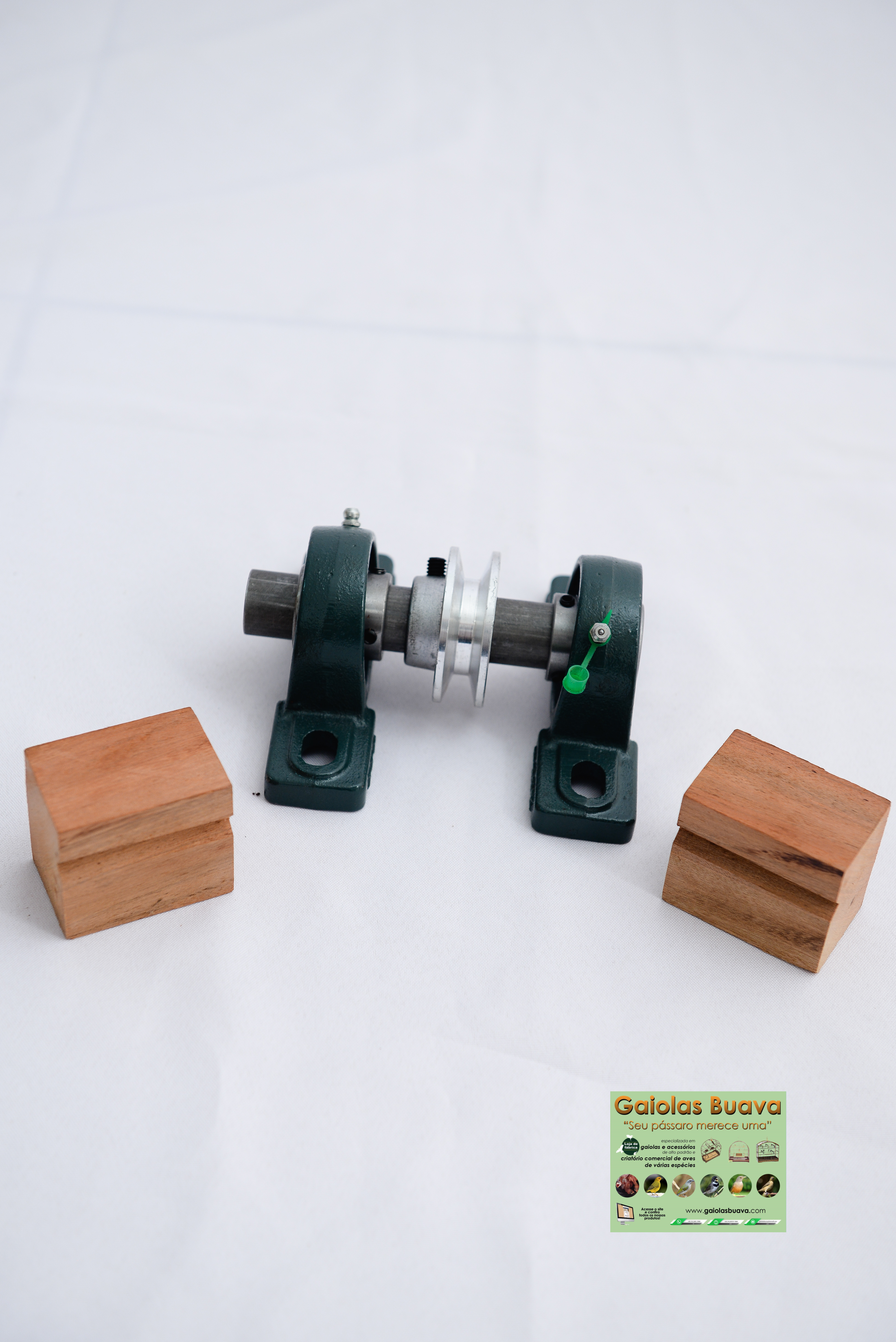 Composição da máquina: *1 Eixo de 1″ externo e 14mm interno tratado termicamente. *2 mancais oscilantes industriais com ponto de lubrificação. *2 rolamentos fixos, selados, com perfuração de infiltração de lubrificante, com 2 parafusos de fixação no eixo. *1 polia de alumínio, com dois parafusos de fixação no eixo.