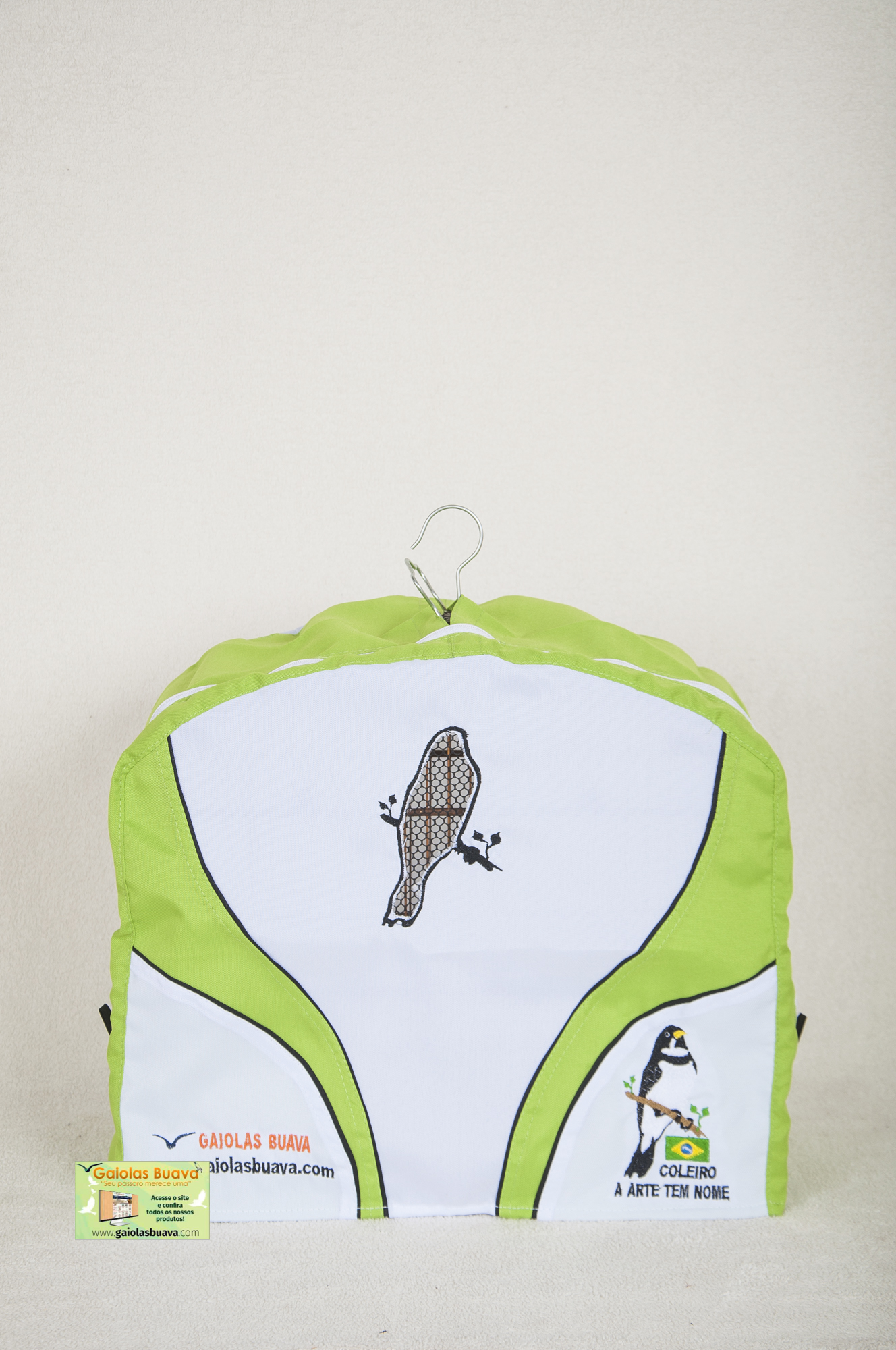 CAPA COLEIRO VERDE E BRANCA   ALÇAS GANCHOS CARA DE GATO ZINCADA