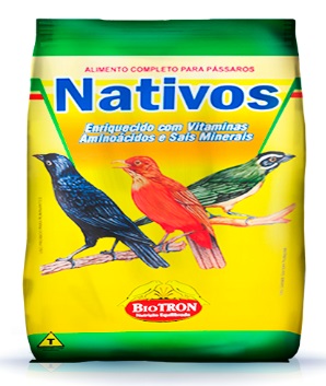 Alimento extrusado com proteínas de alto valor biológico para Sabiá, Pássaro-Preto, Trinca-ferro e demais pássaros granívoros deste porte. Recomenda-se que o alimento Nativos seja introduzido na dieta dos pássaros de maneira gradativa, misturando-o aos alimentos utilizados costumeiramente. Pois, toda mudança brusca na alimentação pode causar problemas como estresse e distúrbios digestivos. Desta forma, consegue-se uma boa adaptação ao alimento, podendo substituir totalmente os demais alimentos. Para se obter um bom equilíbrio nutricional, recomenda-se que pelo menos 50% da alimentação dos pássaros seja constituída por este alimento.
