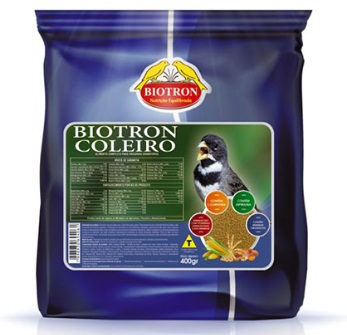 Alimento recomendado para, coleirinha-papa-capim. Recomenda-se que o alimento Biotron Coleiro, seja fornecido de maneira gradativa, misturado às sementes ou aos alimentos utilizados costumeiramente, pois, toda mudança brusca na alimentação pode causar problemas como estresse e distúrbios digestivos. Assim consegue-se uma boa adaptação ao consumo do alimento, que pode substituir totalmente as sementes ou outros alimentos utilizados. Para se obter um bom equilíbrio nutricional, recomenda-se que pelo menos 50% da alimentação fornecida aos pássaros seja constituída pelo Alimento Biotron Coleiro.