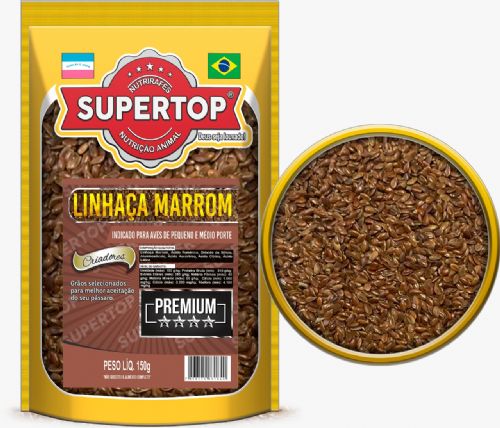 Descrição/Benefícios: Grão da planta linho. É rico em proteínas e extrato etério (óleos), principalmente do grupo Ômega 3, essencial para uma excelente plumagem. Possui propriedades terapêuticas, melhorando o trânsito do bolo alimenta no tubo digestivo e contribuindo para uma melhor digestão.
