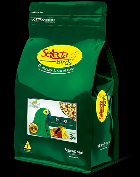 Alimento extrusado (milho integral*, soja integral extrusada**, óleo de coco, fosfato bicálcico, dextrose, ovo integral desidratado, cenoura desidratada, carbonato de cálcio, ácido cítrico, premix vitamínico (vitamina A, vitamina D3, vitamina E, vitamina K, vitamina B1, vitamina B2, vitamina B6, vitamina B12, biotina, niacina, ácido pantotênico, ácido fólico), premix mineral orgânico (proteinato de manganês, proteinato de zinco, proteinato de ferro, levedura enriquecida com selênio, iodato de potássio), aminoácidos (metionina, lisina e treonina), aditivo antifúngico e fungistático (propionato de cálcio e sorbato de potássio), cloreto de sódio, tocoferol, adsorvente de micotoxina, aditivos antioxidantes BHT/BHA, aditivo probiótico (Bifidobacterium bifidum, Enterococcus faecium, Lactobacillus acidophilus, Lactobacillus plantarum, Saccharomyces cerevisiae), enzimas digestivas (pectinase, protease, fitase, betaglucanase, xilanase, celulase e amilase), aditivo prebiótico (mananoligossacarídeo) e extrato de Yucca schidigera), frutas desidratadas e aroma de mamão.