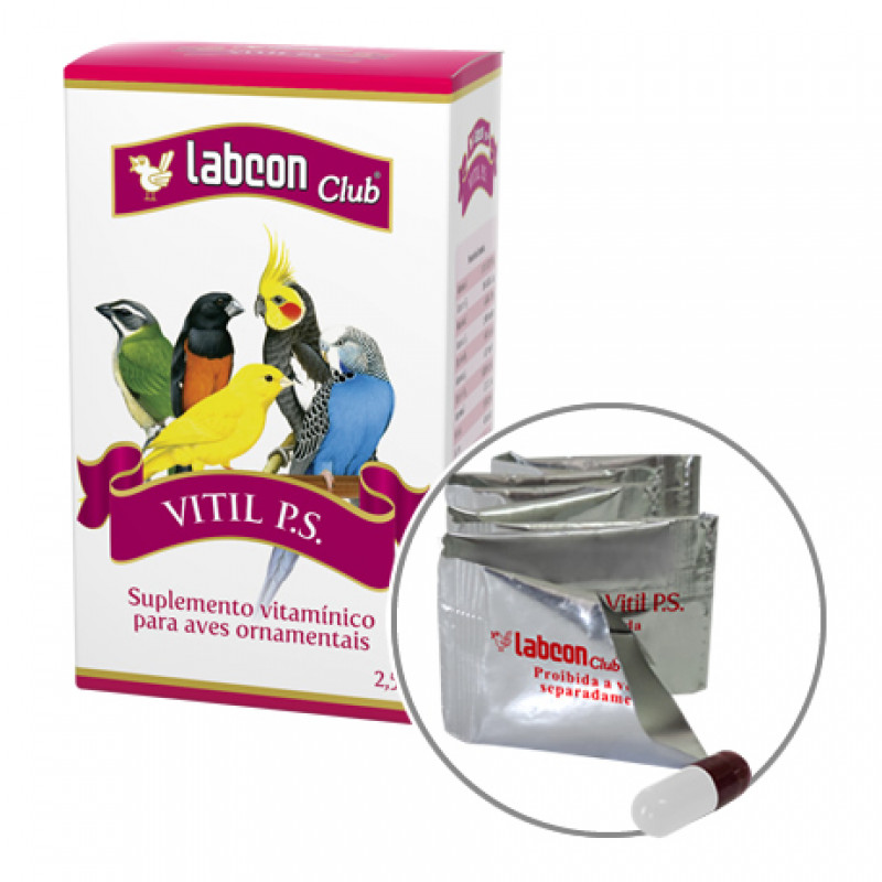 Labcon Club Vitil P.S. é um suplemento balanceado de vitaminas destinado às aves que apresentem os sintomas de Peito Seco ou quadros de desnutrição, onde o osso externo fique proeminente. A apresentação em cápsulas com doses diárias facilita a aplicação, além de garantir a qualidade e integridade do produto.