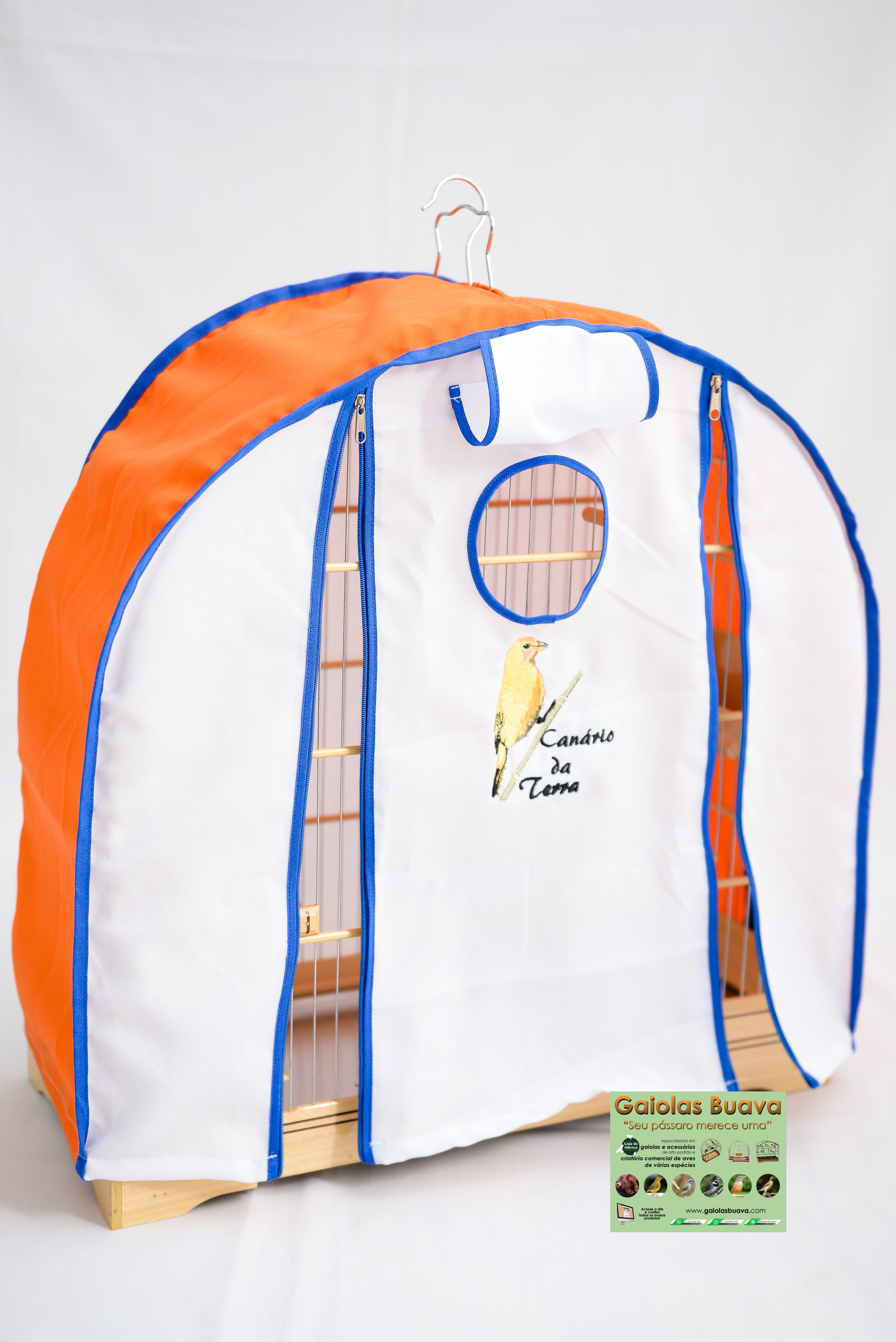 CAPA PARA GAIOLA N°6 - COM ESTAMPA BORDADA DO PÁSSARO CANÁRIO DA TERRA - COR CLARA