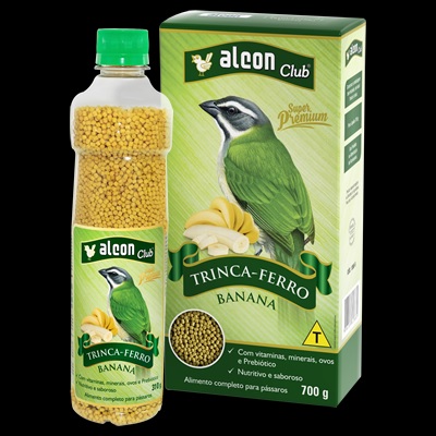 Alcon Club Trinca-Ferro Banana é um alimento extrusado completo, de fácil digestão, elaborado com ingredientes selecionados, vitaminas e minerais de alta qualidade. Indicado para a nutrição de Trinca-Ferros (Pixarros) e outros pássaros frugívoros como Mainás, Sanhaços e Tiés. Contém Prebiótico que promove o crescimento seletivo de bactérias benéficas presentes nos intestinos, melhorando o aproveitamento dos nutrientes. O aroma e o sabor característicos de banana tornam o alimento muito atrativo. Forma de usoServir em comedouros limpos e secos, preferencialmente como alimento único. Frutas devem ser oferecidas apenas como petisco, em pequena quantidade, no máximo duas vezes por semana. Deixar água limpa sempre à disposição.