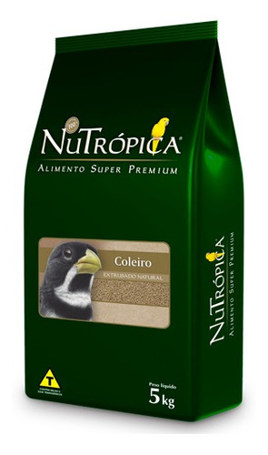 NuTrópica® Coleiro Natural é um alimento completo que atende a 100% das necessidades nutricionais de sua ave e deve ser utilizado como o único alimento para o seu Coleiro. Não recomendamos a adição de qualquer suplemento nutricional nem a utilização de misturas de sementes ou farinhadas. Verduras e legumes frescos podem ser oferecidos, desde que não ultrapassem 20% do peso total do alimento diário. Água limpa e fresca deve ser oferecida diariamente. O veterinário deve ser visitado regularmente.