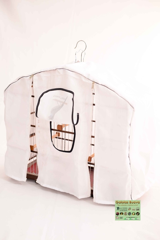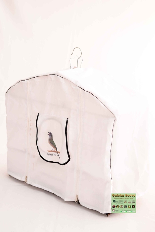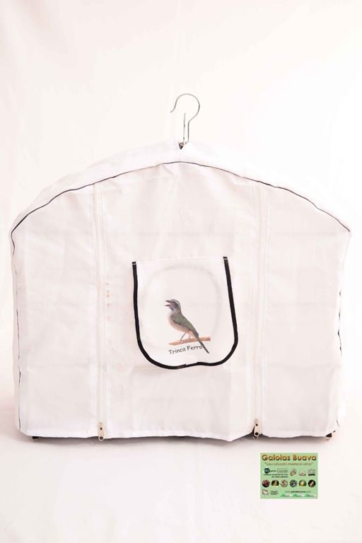 CAPA BRANCA TRINCA-FERRO MEDIDA PADRÃO TORNEIO JANELA CENTRAL CIRCULAR 2 ZÍPERES NA FRONTAL 1 ABERTURA EM CIMA PARA O GANCHO 1 ABERTURA TRASEIRA PARA O PREGO - PENDURAR A GAIOLA