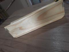 LINDO COCHO COM POLEIRO ALTO GRANDE, MADEIRA CLARA, COM DIVISÓRIA NO MEIO, COM LINHAS DESENHADAS NA LATERAL, FUNDO, 2 (DUAS) PRESILHAS DE ARAME, ENVERNIZADA