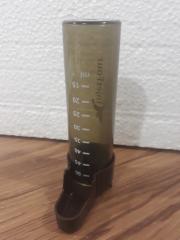 BEBEDOURO CILINDRO MARROM DE PLASTICO COM PEZINHO. O MINIMO DELE È DE 15 ML ATÈ 50 ML. TAMBÉM VEM COM MARCAÇÃO EM BRANCO PULANDO DE 5 EM 5