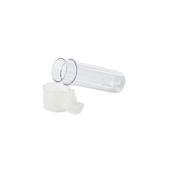 Bebedouro plástico transparente de fácil higienização e manejo, pode ser utilizado para gaiolas e viveiros, produzido com plástico resistente, totalmente projetado para evitar derramamento de água.